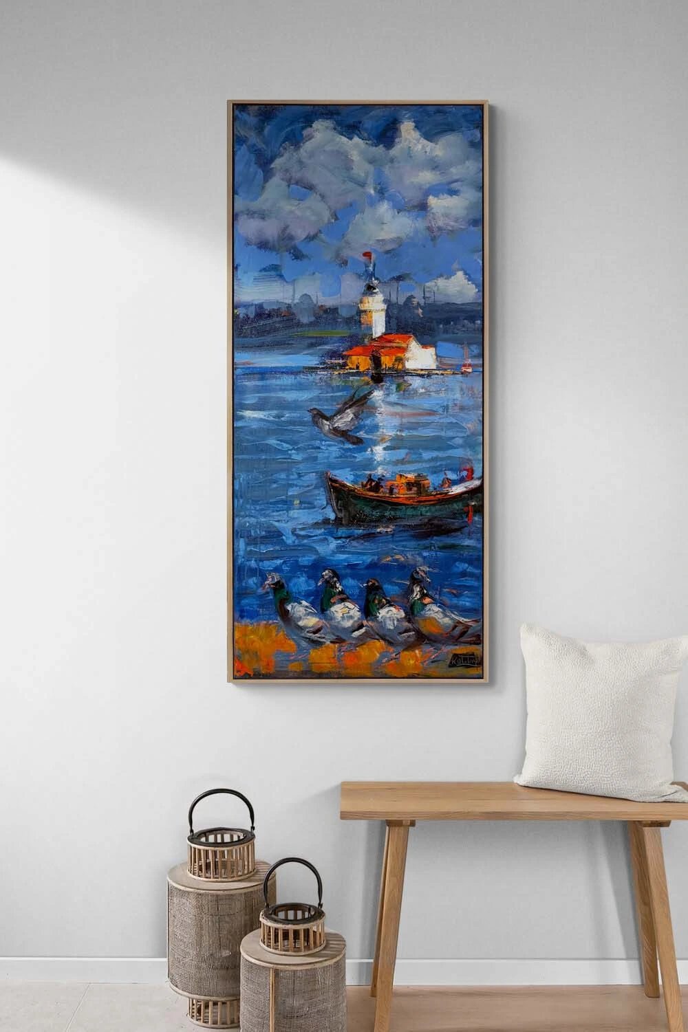 Rüya Adası'nda Kız Kulesi Yağlı Boya Tablosu