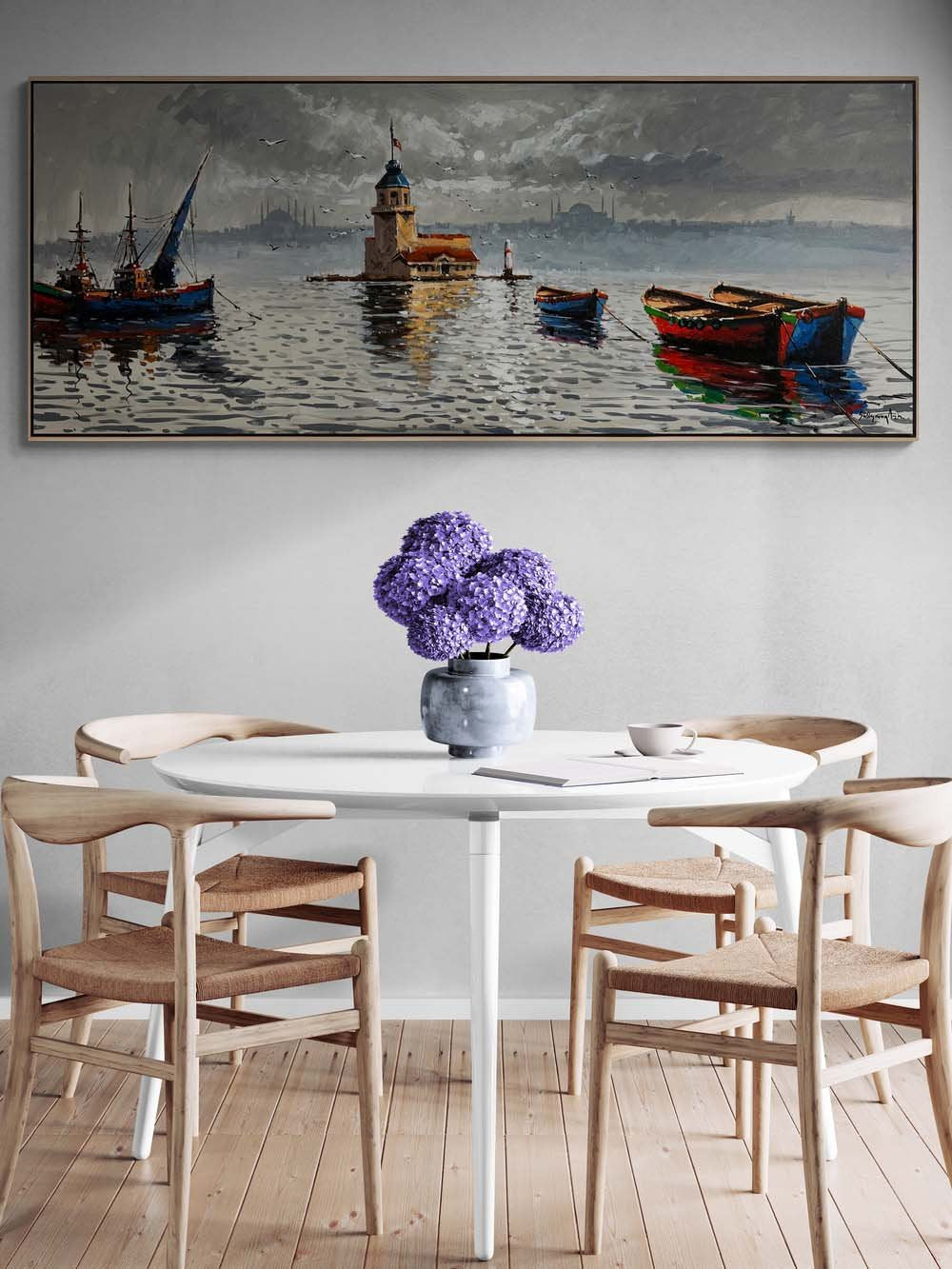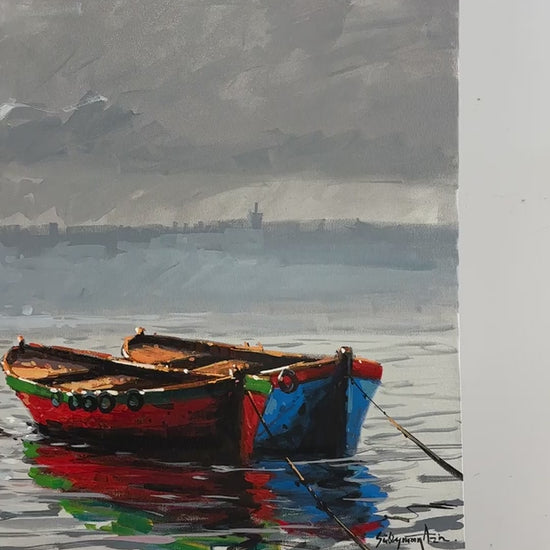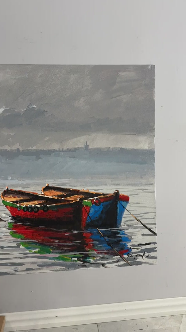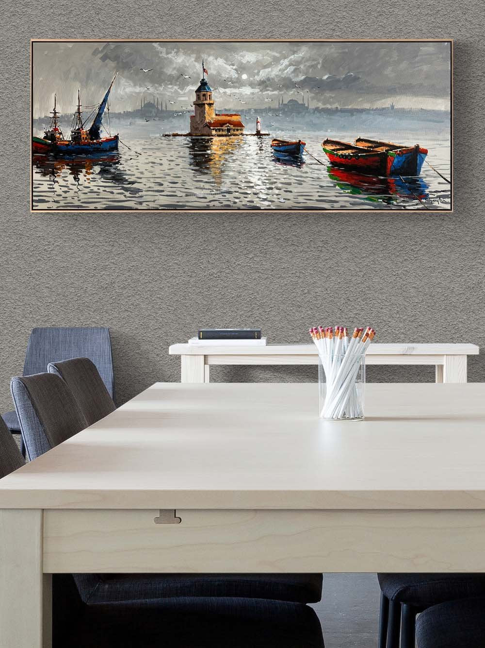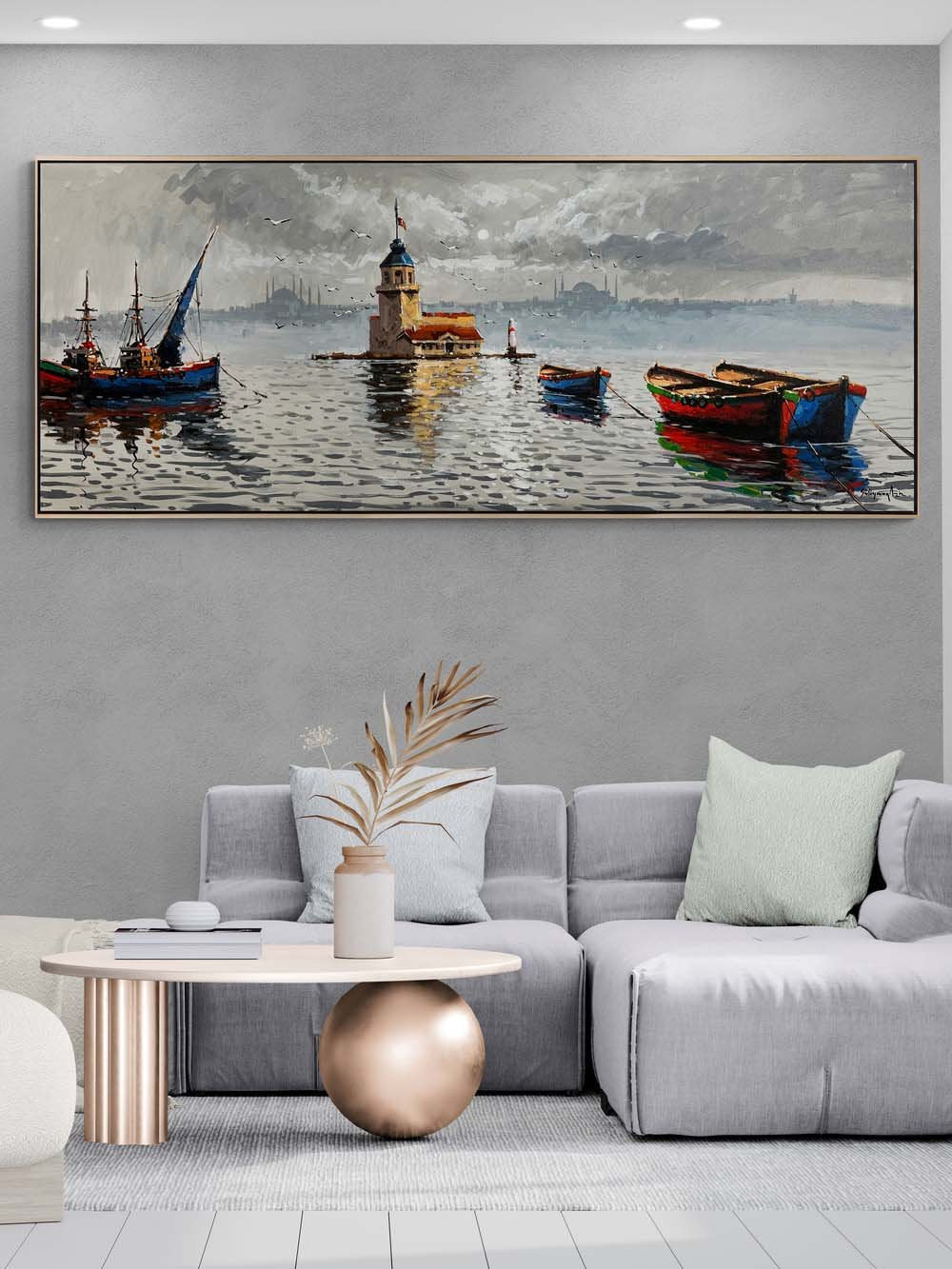 Kız Kulesi ve Teknelerin Duruşu Yağlı Boya Tablosu