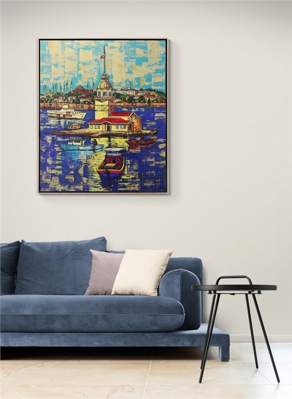 Kız Kulesi ve İstanbul Yarımadası Yağlı Boya Tablosu