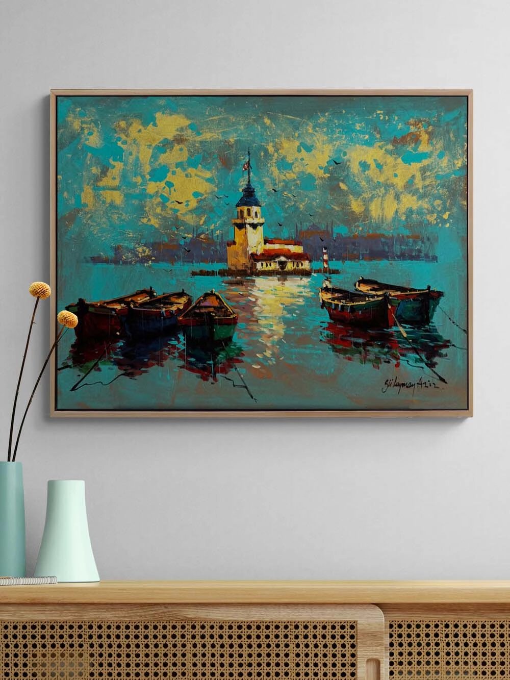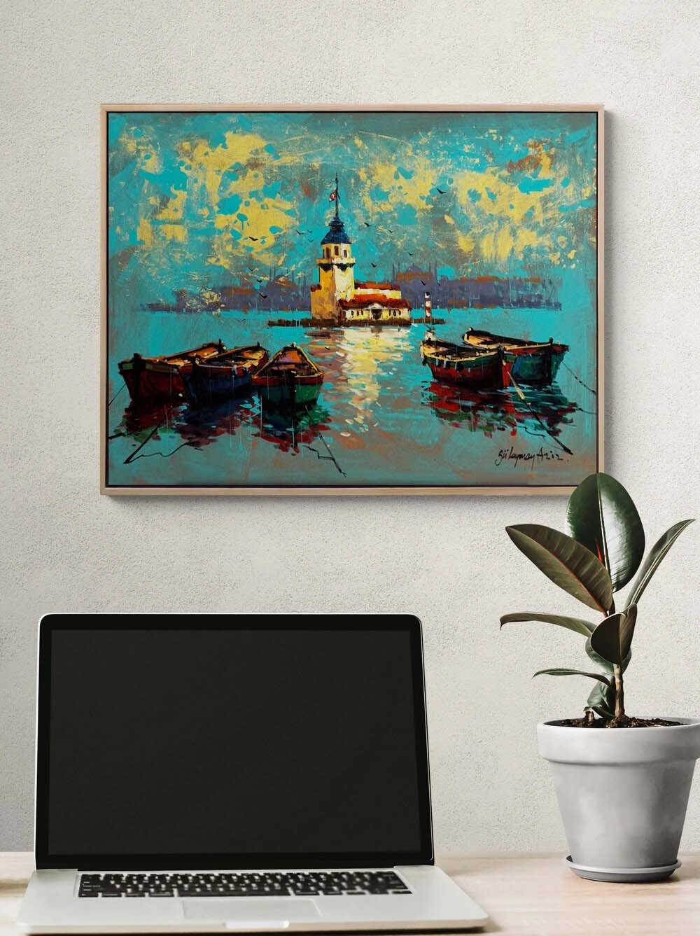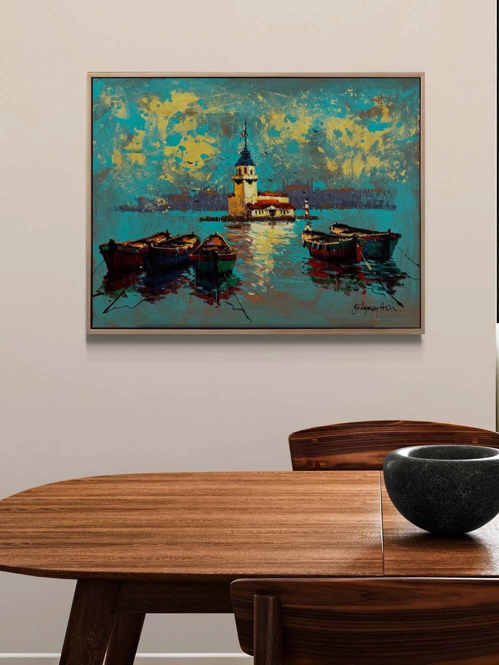 Kız Kulesinde Sandallar Yağlı Boya Tablosu
