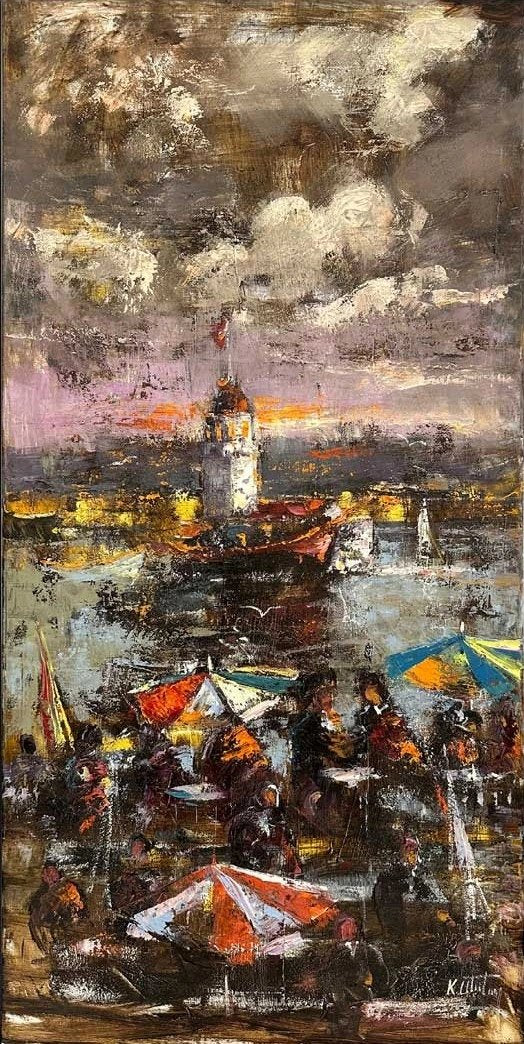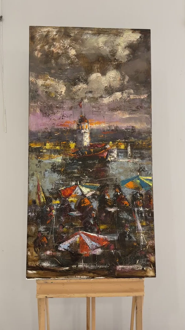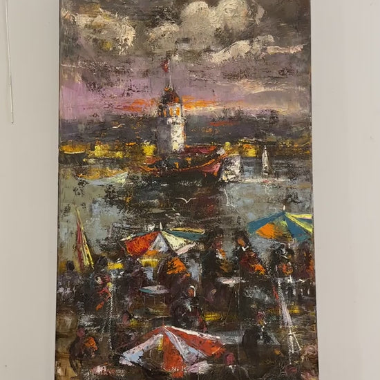 Kız Kulesi'nin Gölgesinde Yağlı Boya Tablosu