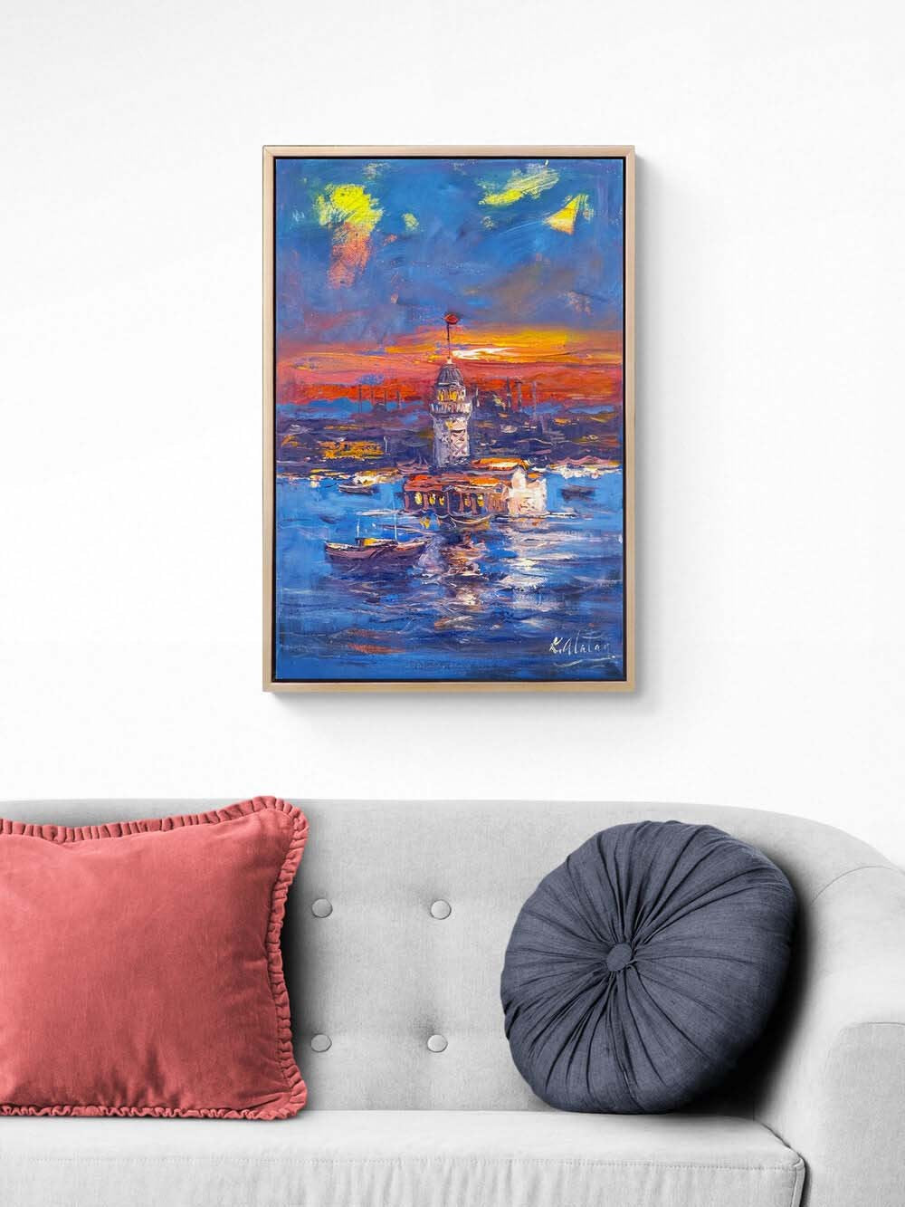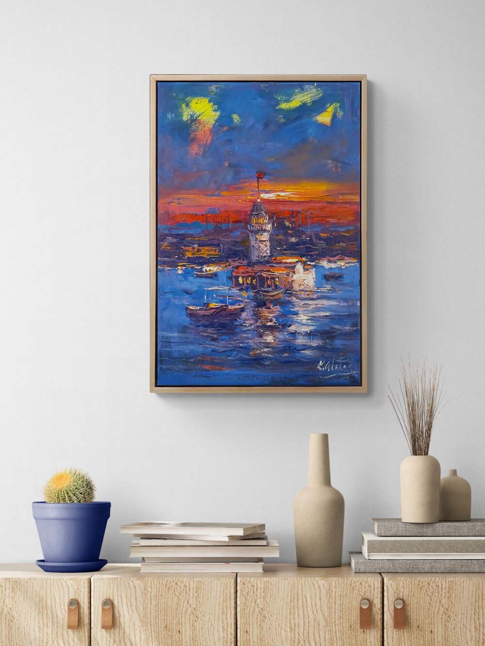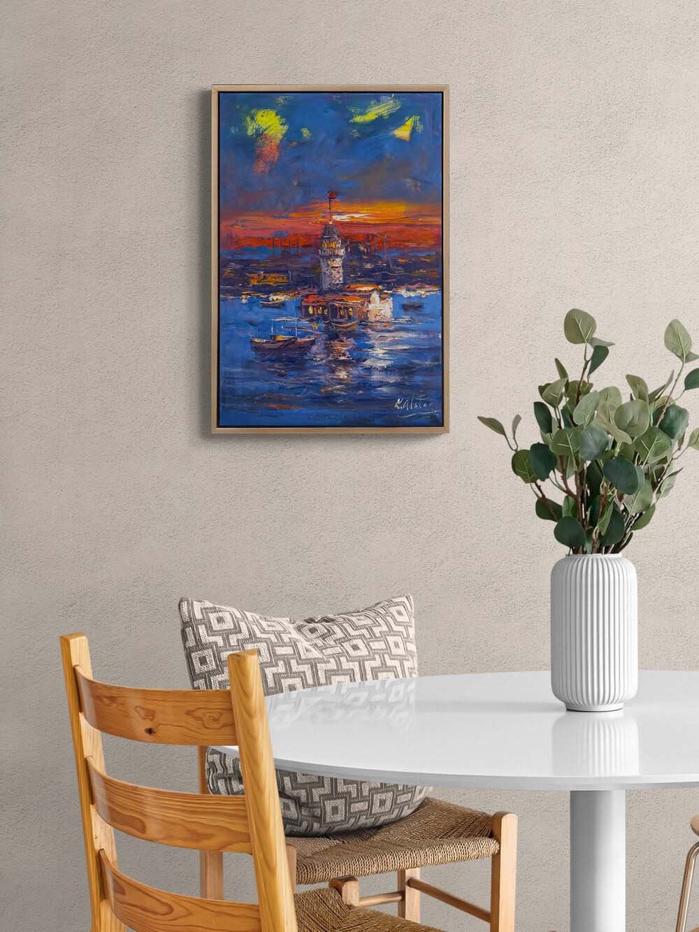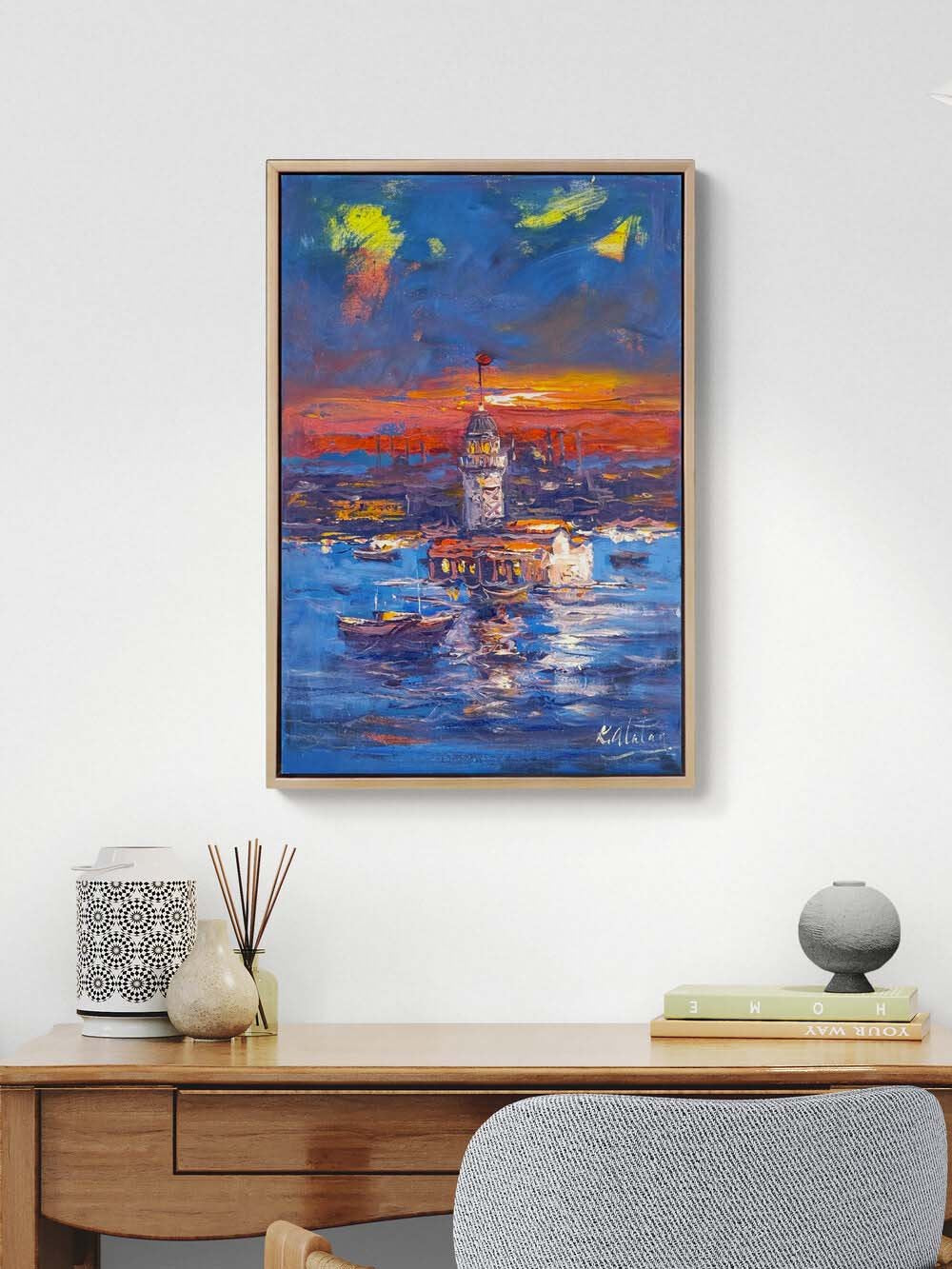 Kızıl Akşamda Üsküdar Yağlı Boya Tablosu
