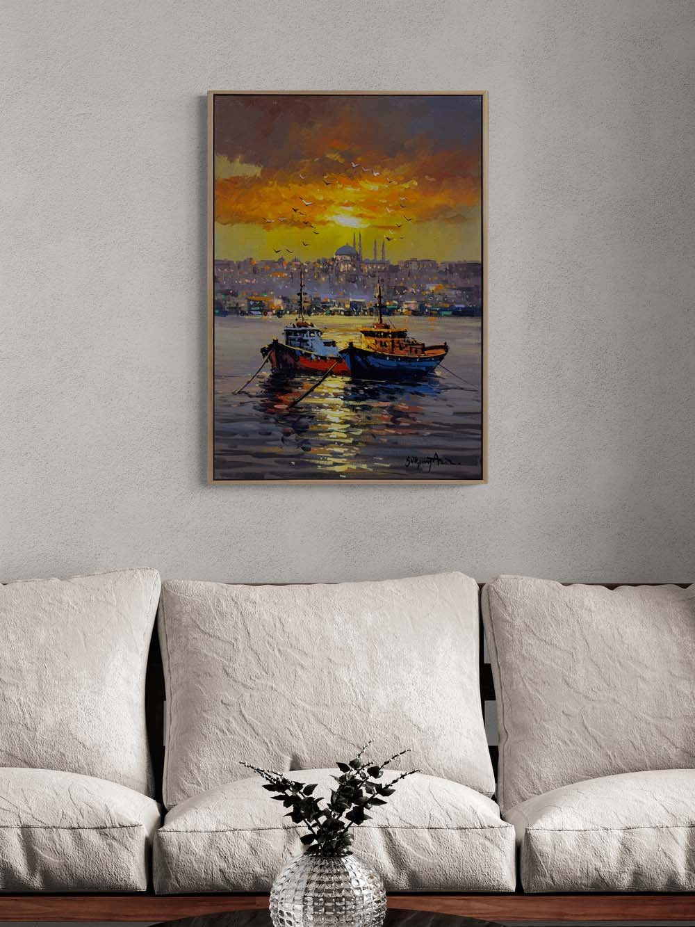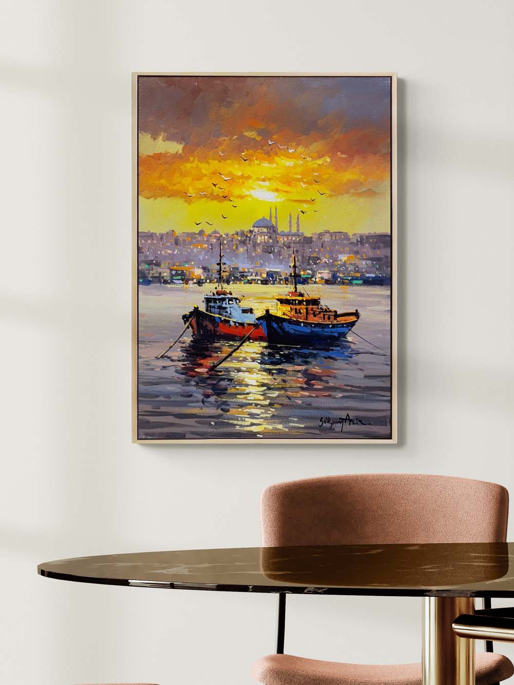 - Özel olarak üretilen 400 gr kalınlığında 1.sınıf sanatsal yağlıboya tuval üzerine çalışılır.