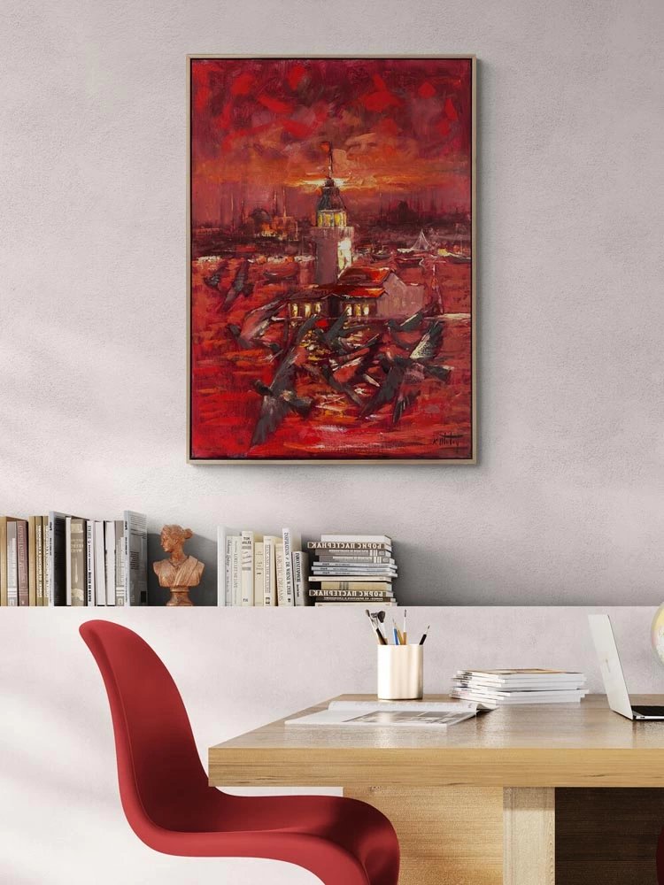 Kızıl Günbatımı Yağlı Boya Tablosu
