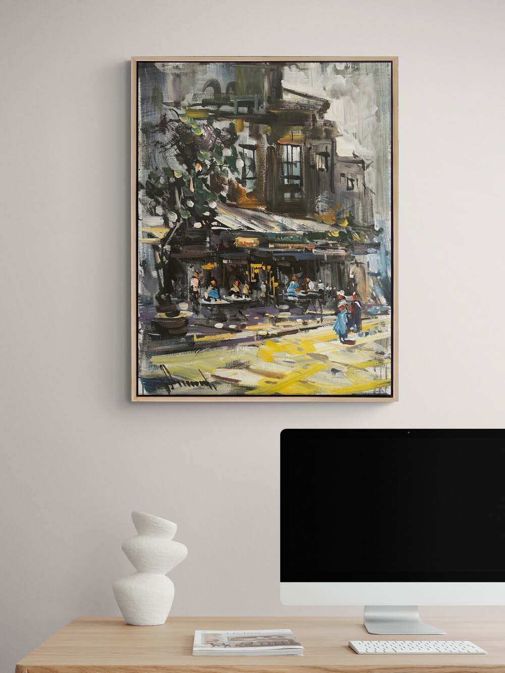 Köşe Başındaki Kafe Yağlı Boya Tablosu
