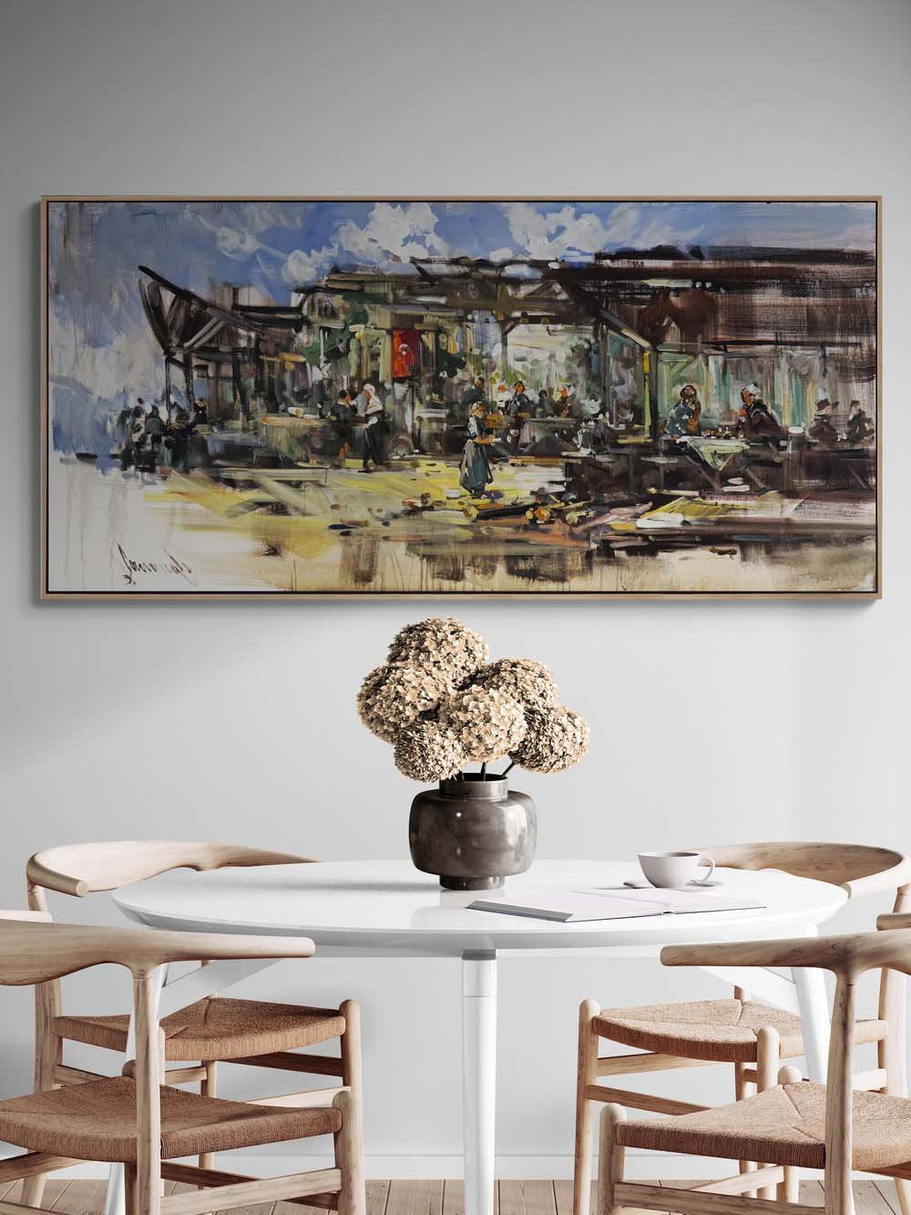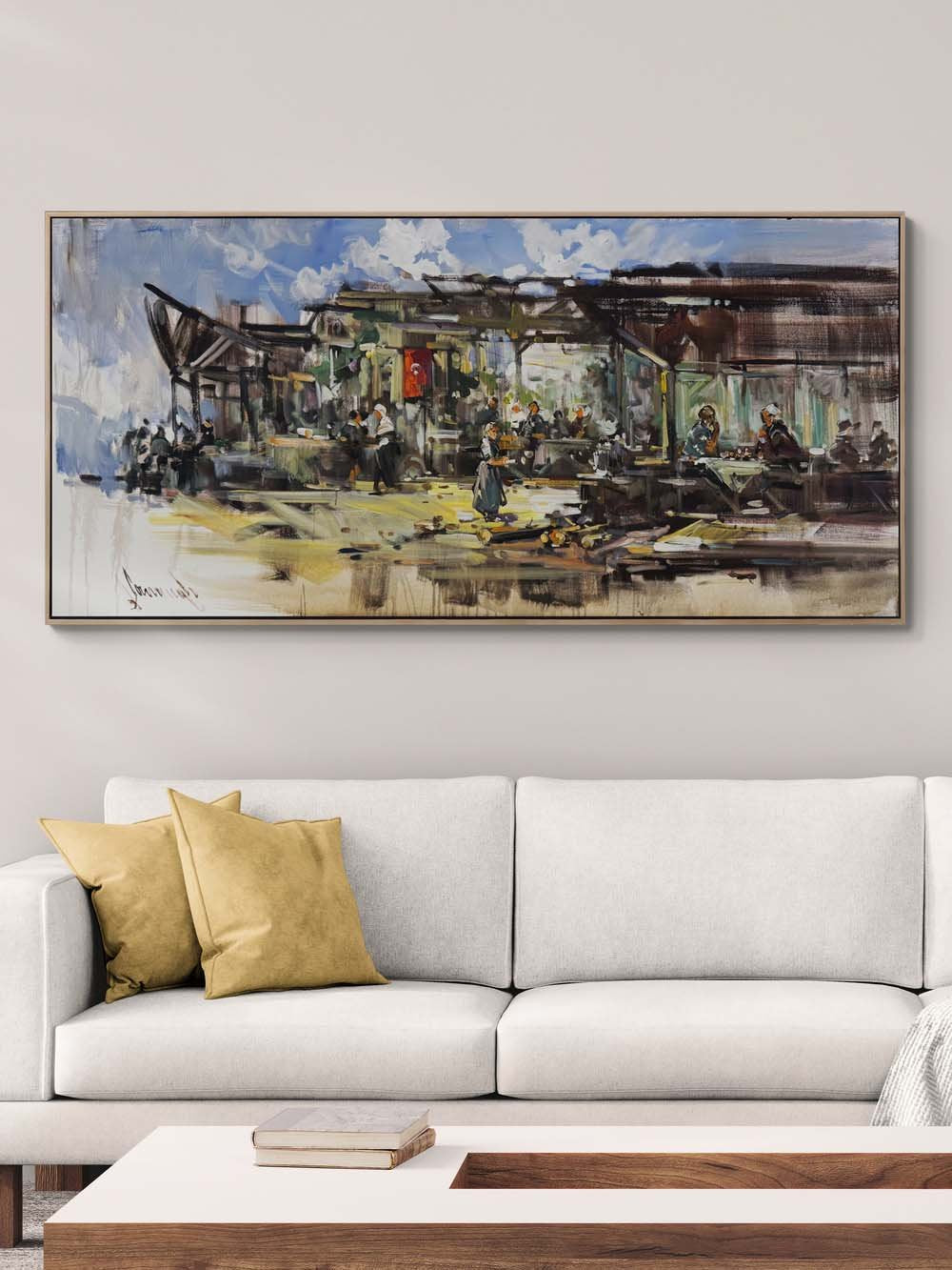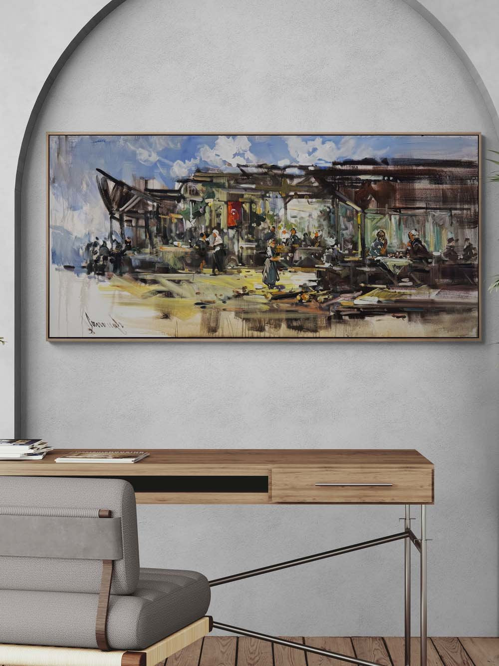 - Özel olarak üretilen 400 gr kalınlığında 1.sınıf sanatsal yağlıboya tuval üzerine çalışılır.