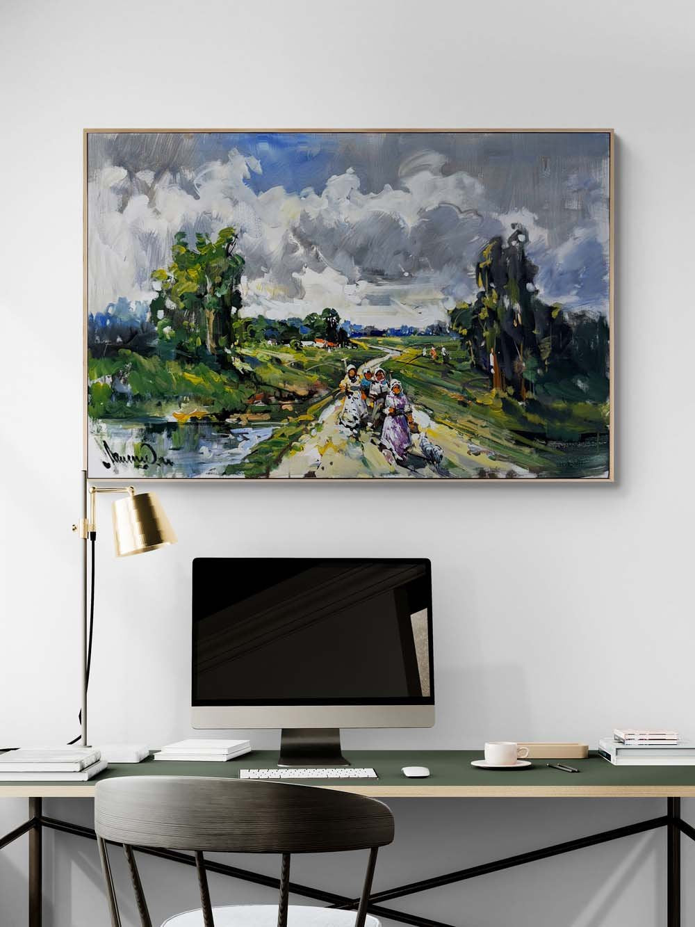 Köyde Akşamüstü Yağlı Boya Tablosu