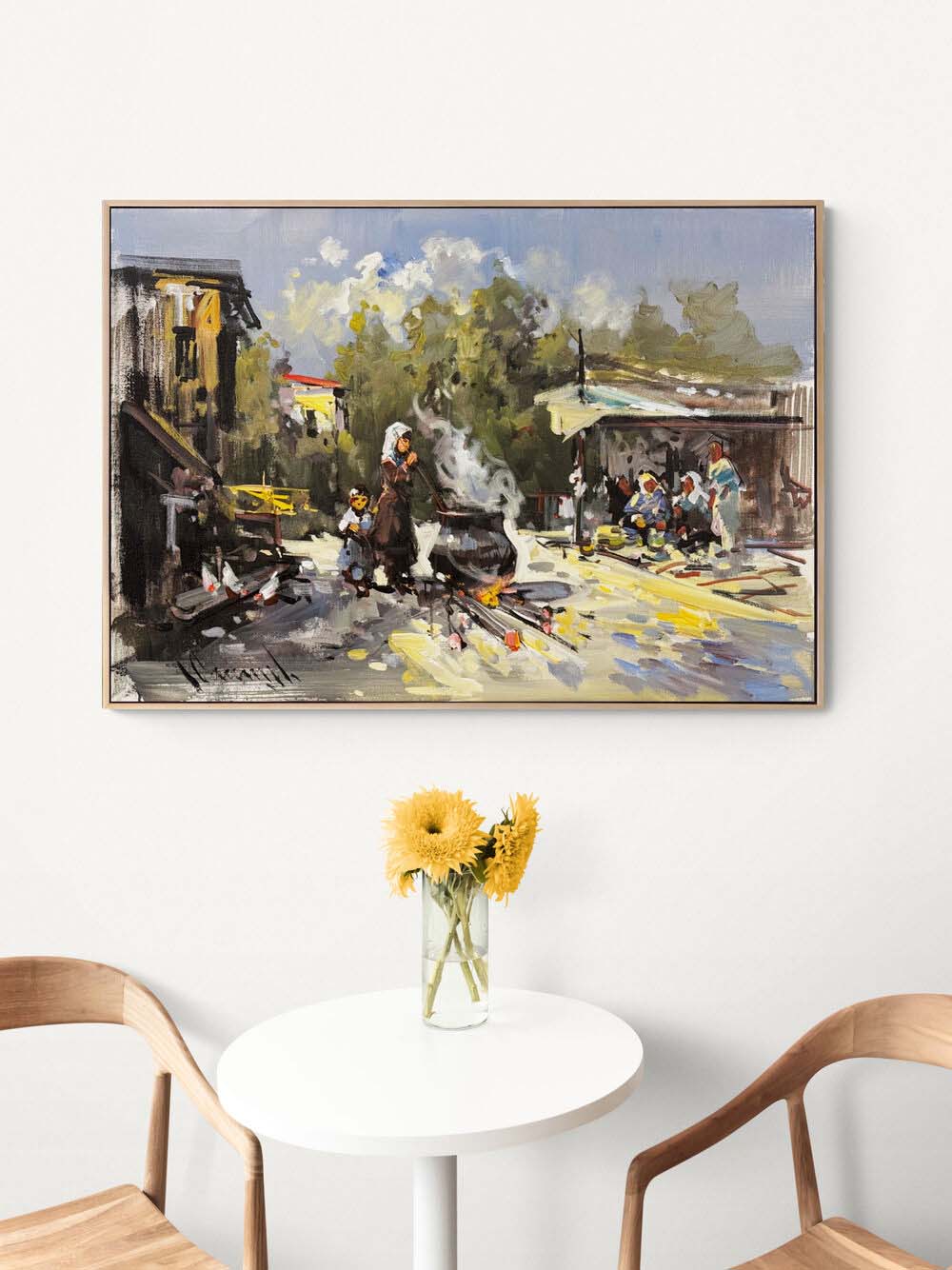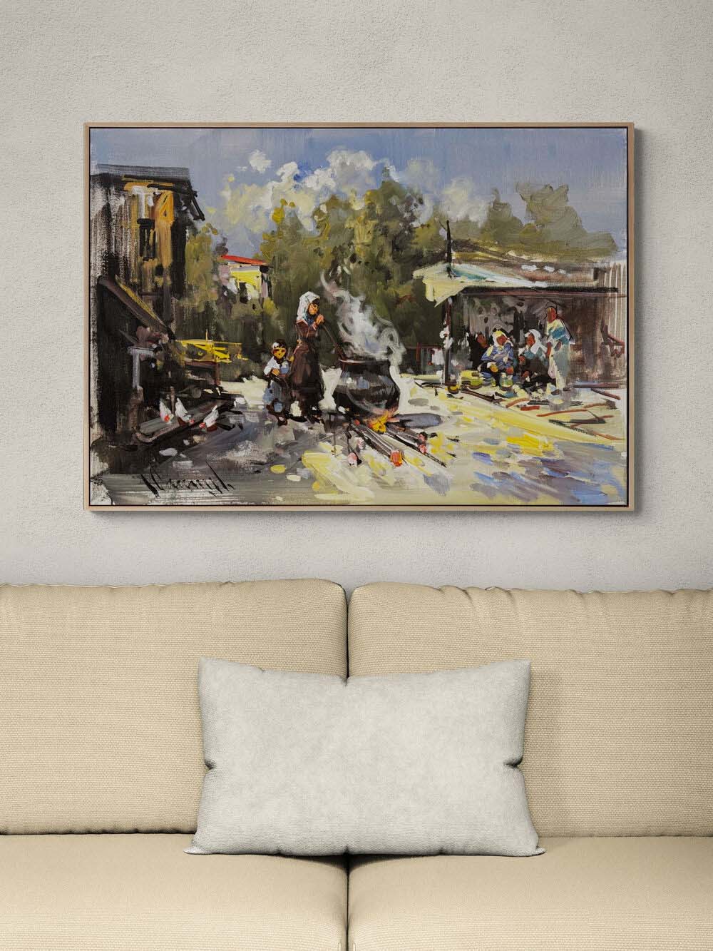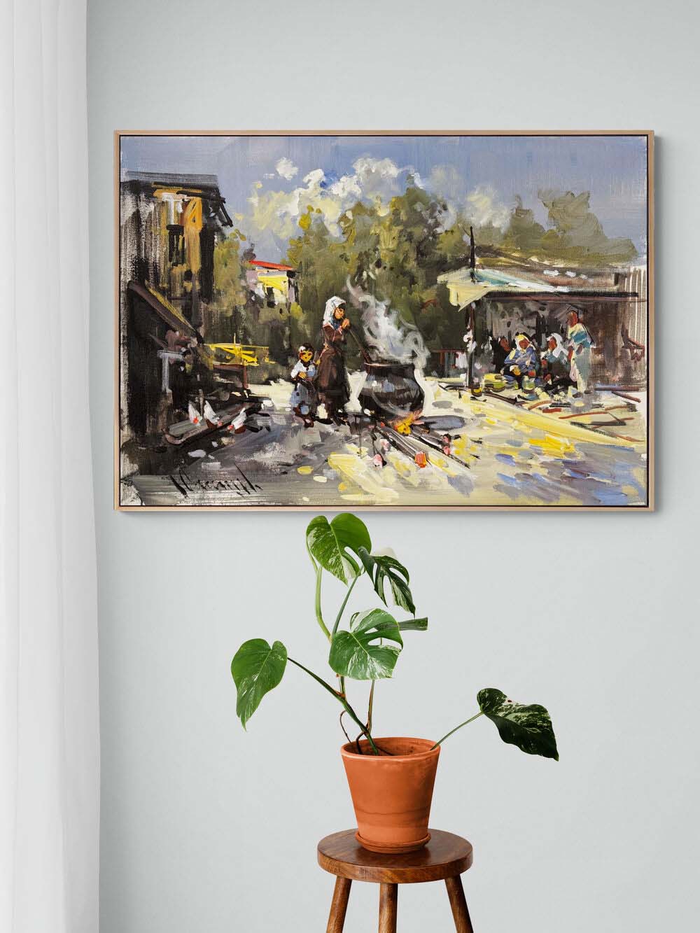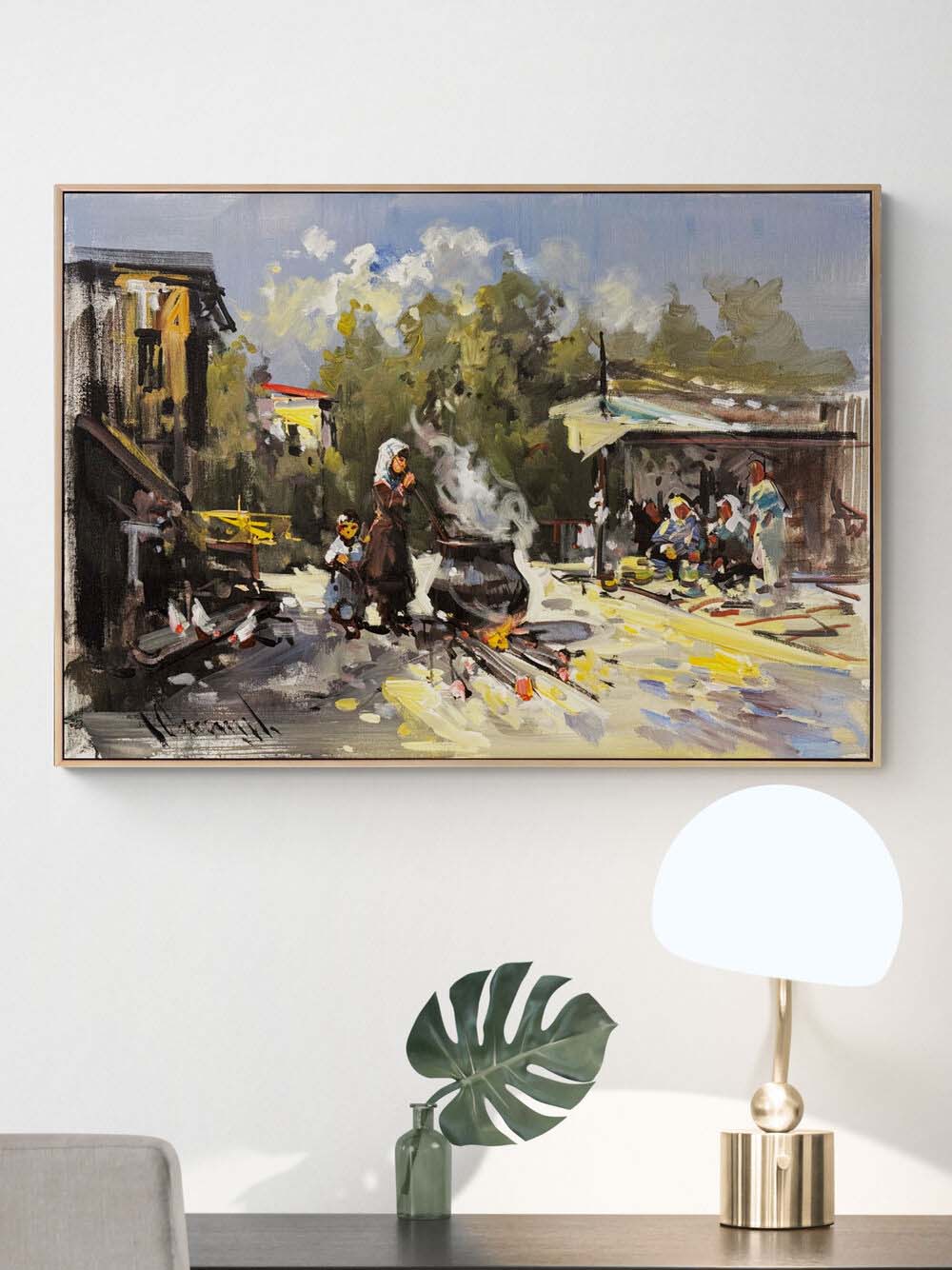 • Özel olarak üretilen 400 gr kalınlığında 1.sınıf sanatsal yağlıboya tuval üzerine çalışılır.