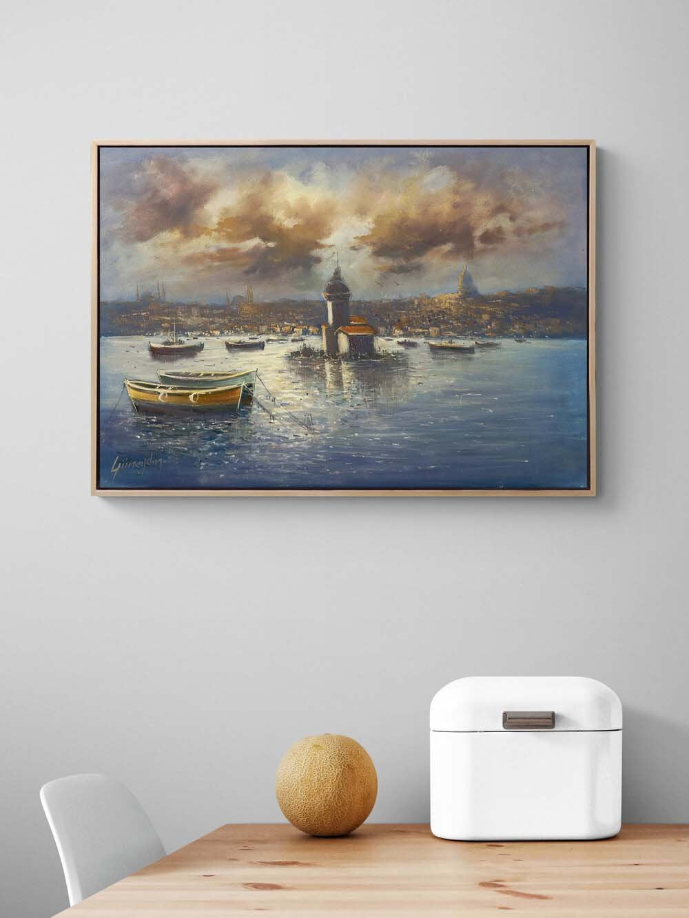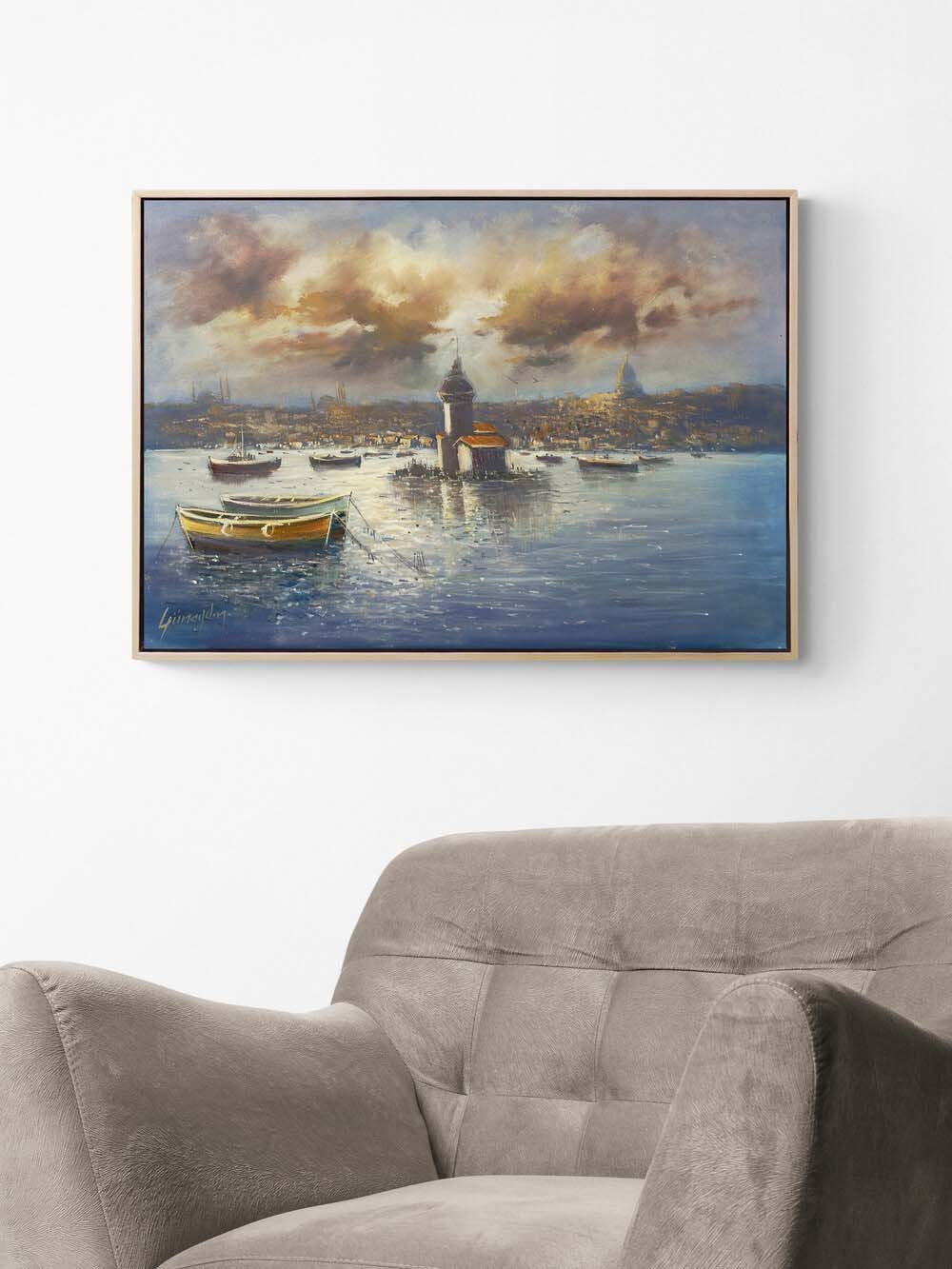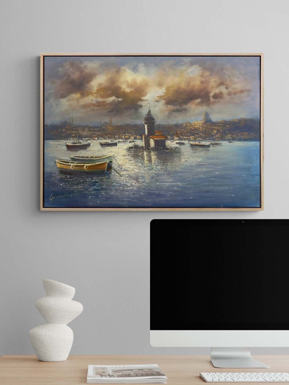 - Özel olarak üretilen 400 gr kalınlığında 1.sınıf sanatsal yağlıboya tuval üzerine çalışılır.