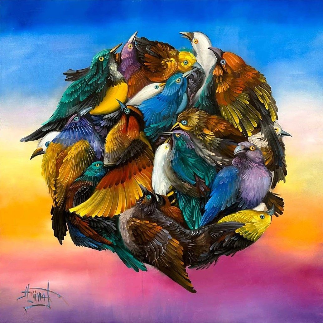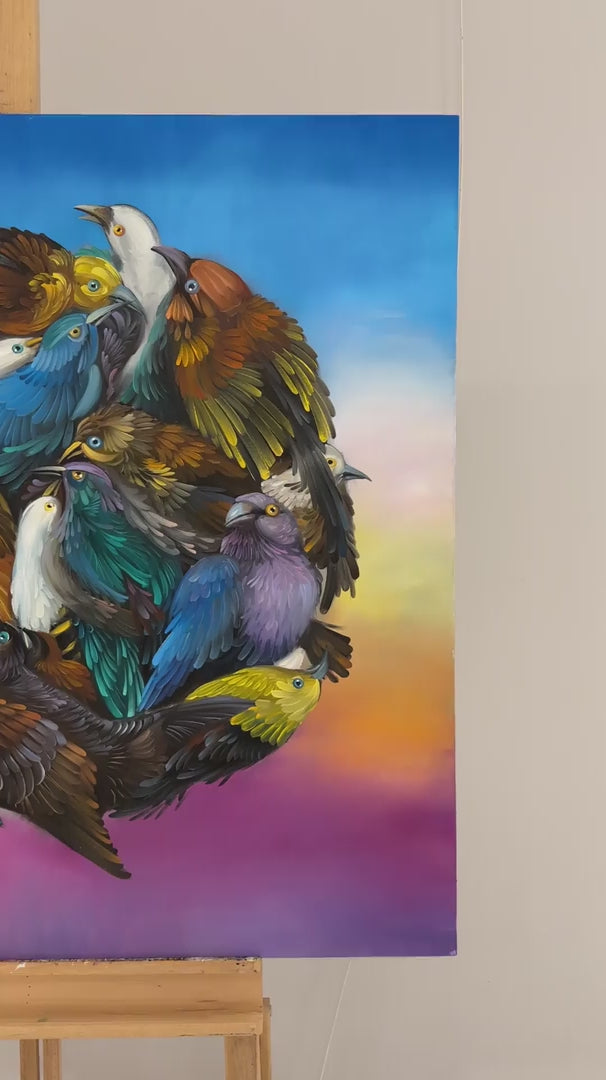 Kuşların Neşeli Şarkısı Yağlı Boya Tablosu