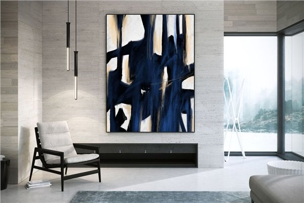 Lacivert Minimal Siparişe Özel Soyut Yağlı Boya Tablo