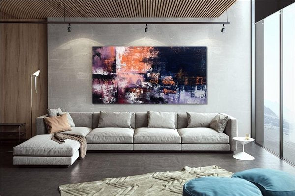 Lacivert Mor ve Turuncu Siparişe Özel Soyut Yağlı Boya Tablo