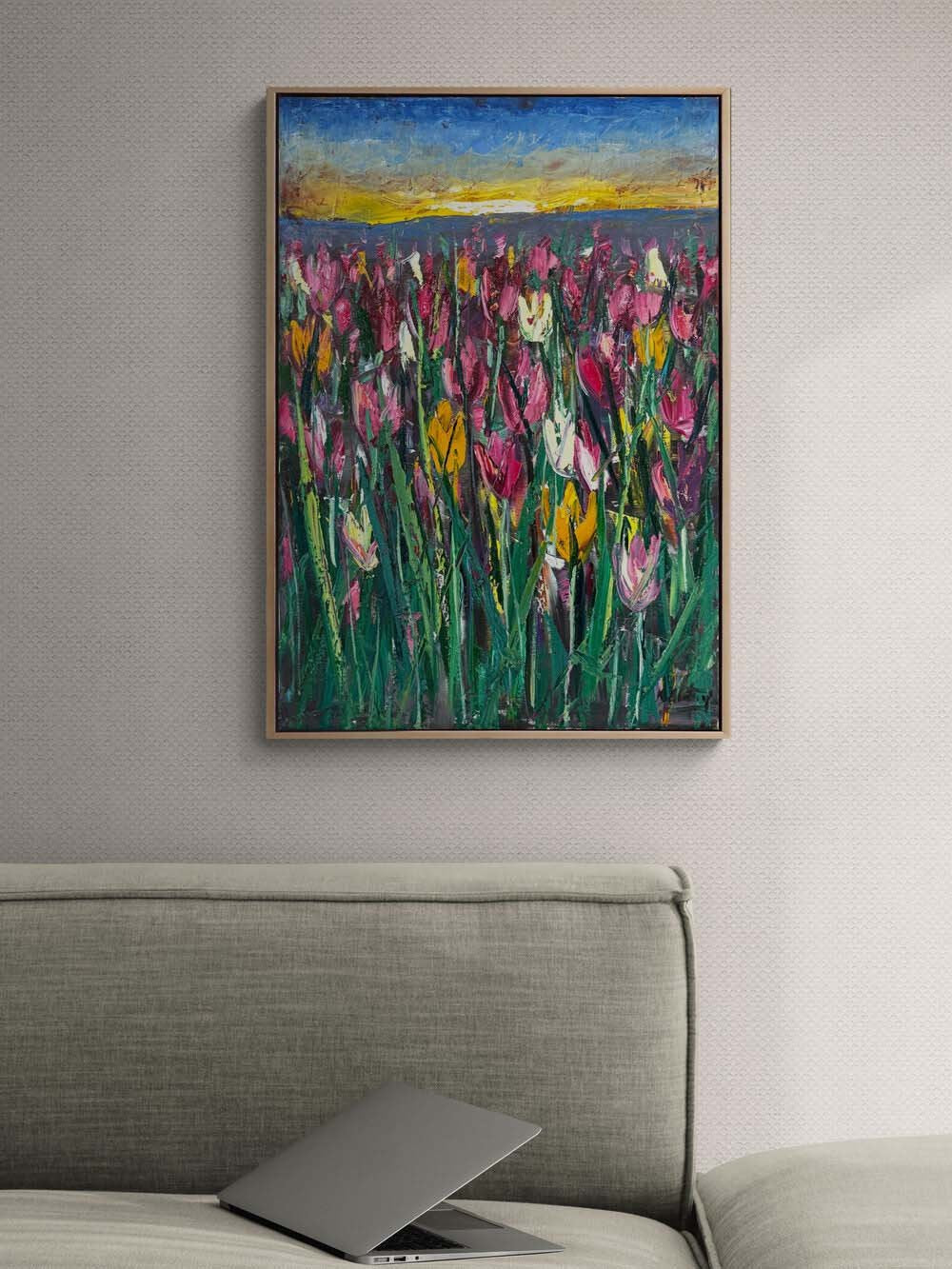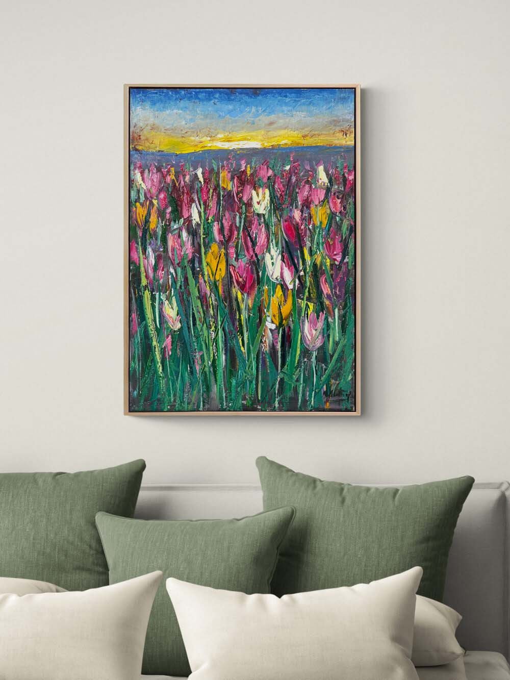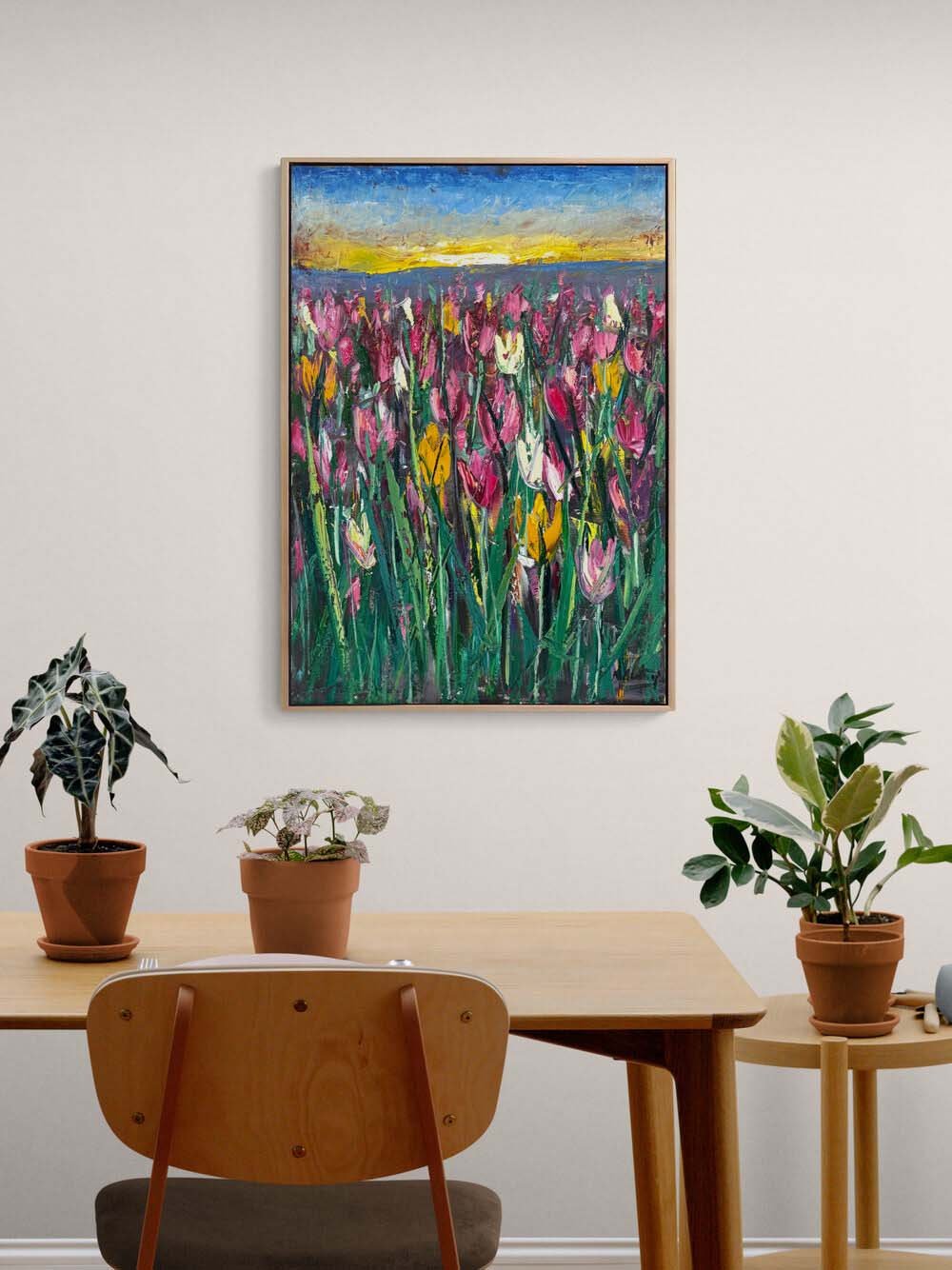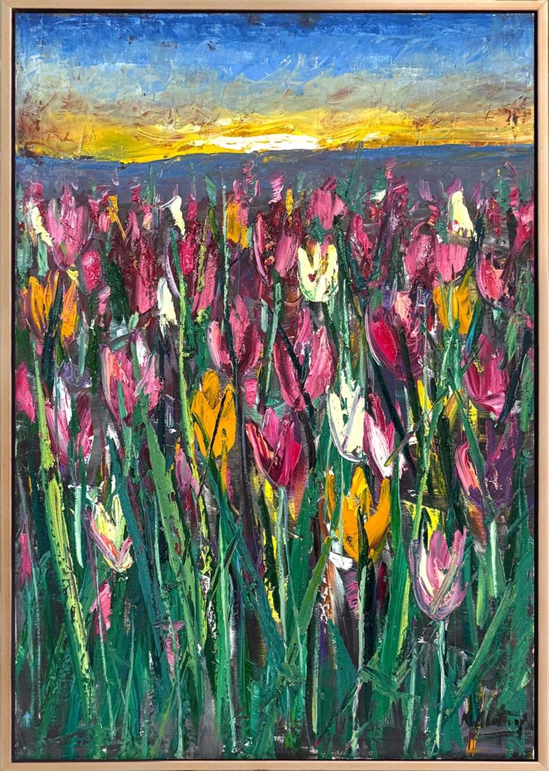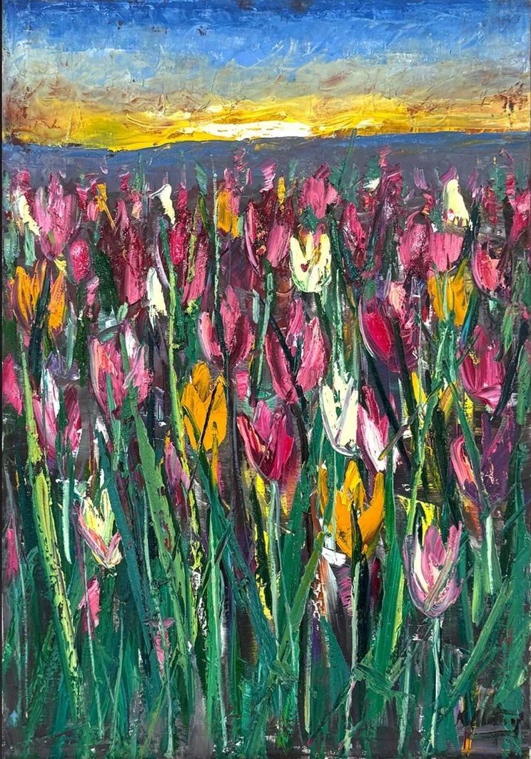 Lale Bahçesinde Sabah Yağlı Boya Tablosu