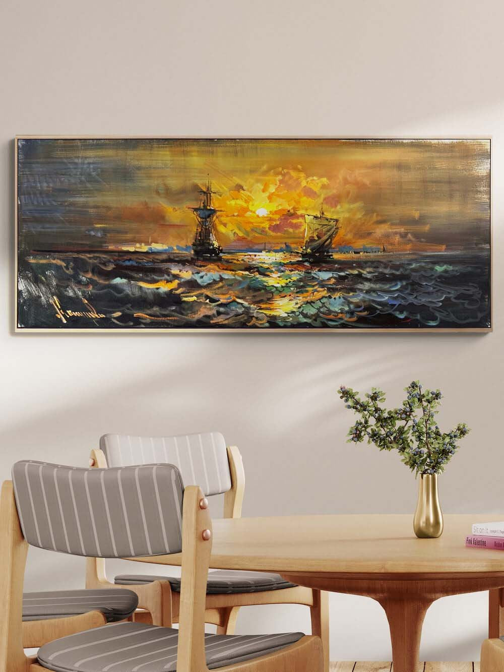 Limanda Akşam Ezgisi Yağlı Boya Tablosu