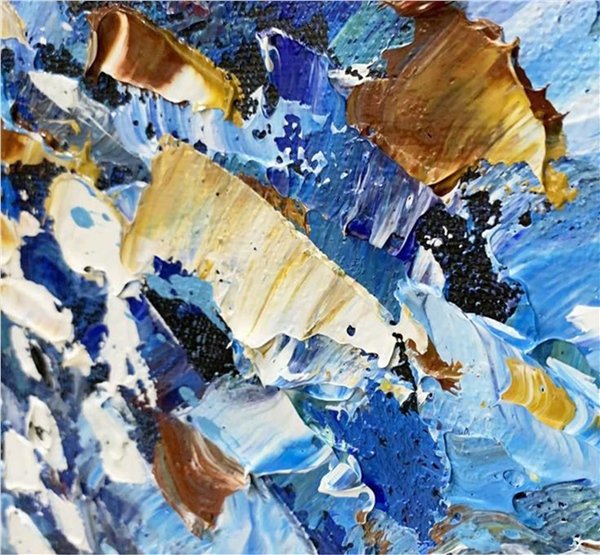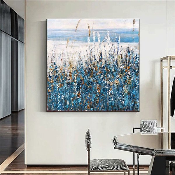 Mavi Beyaz Çiçekler Siparişe Özel Soyut Yağlı Boya Tablo