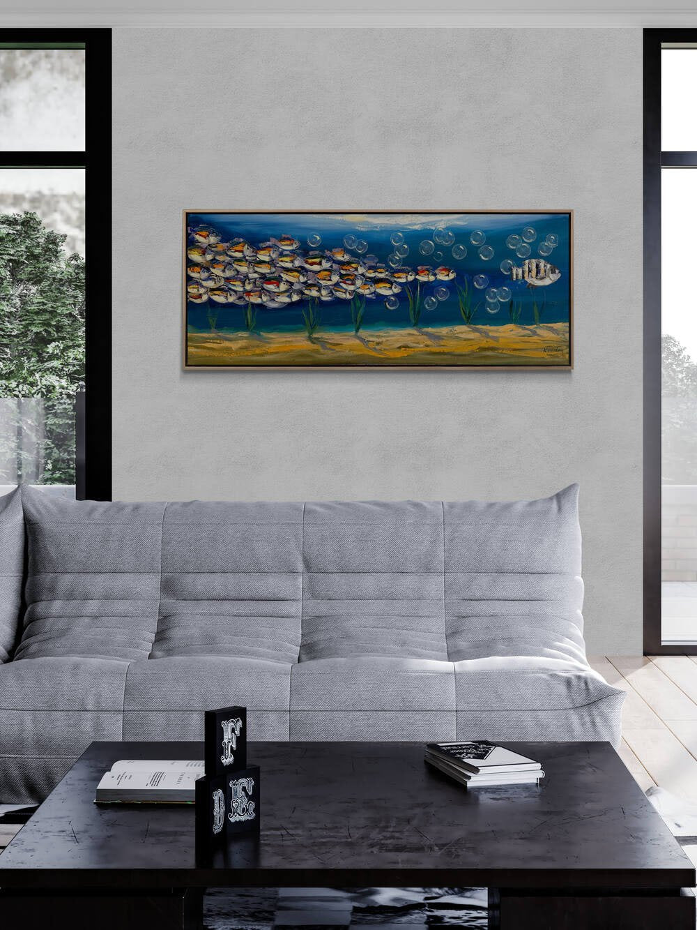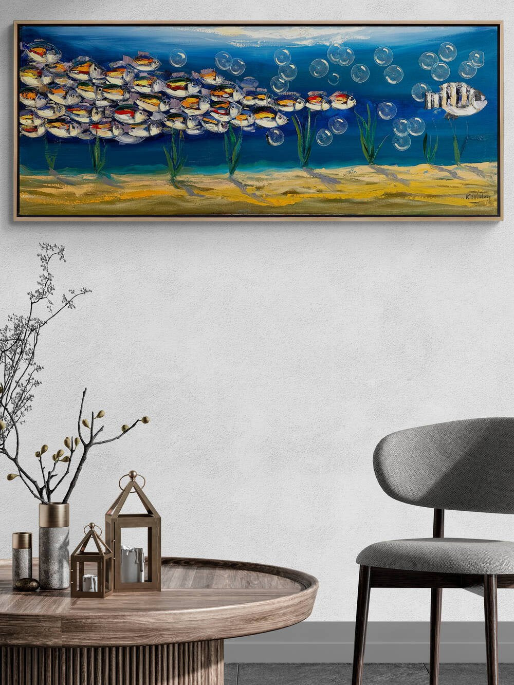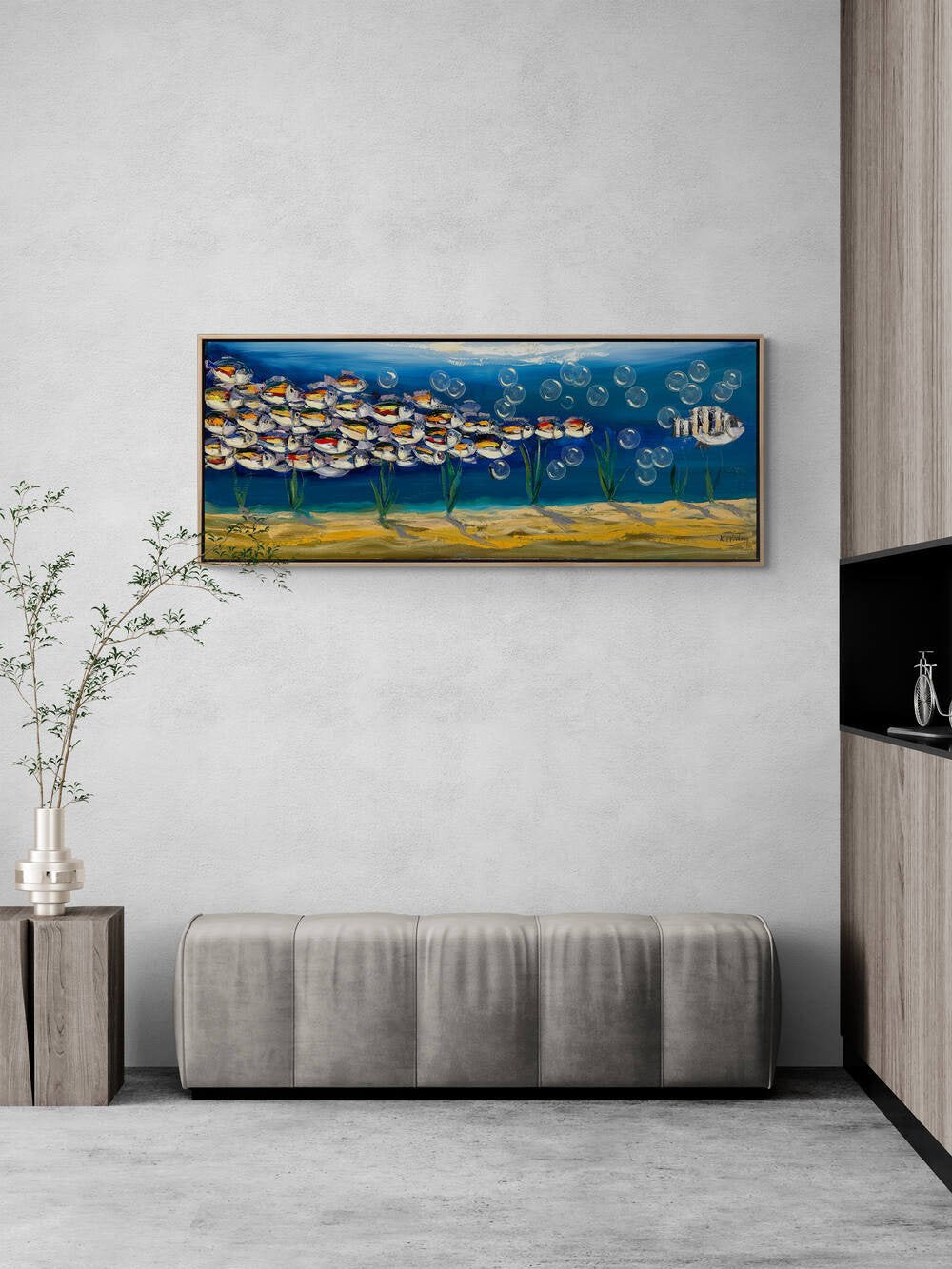 Mavi Derinliklerde Yüzen Balıklar Yağlı Boya Tablosu