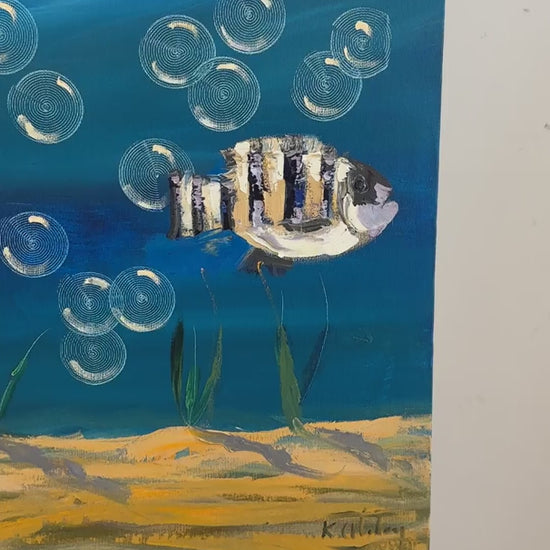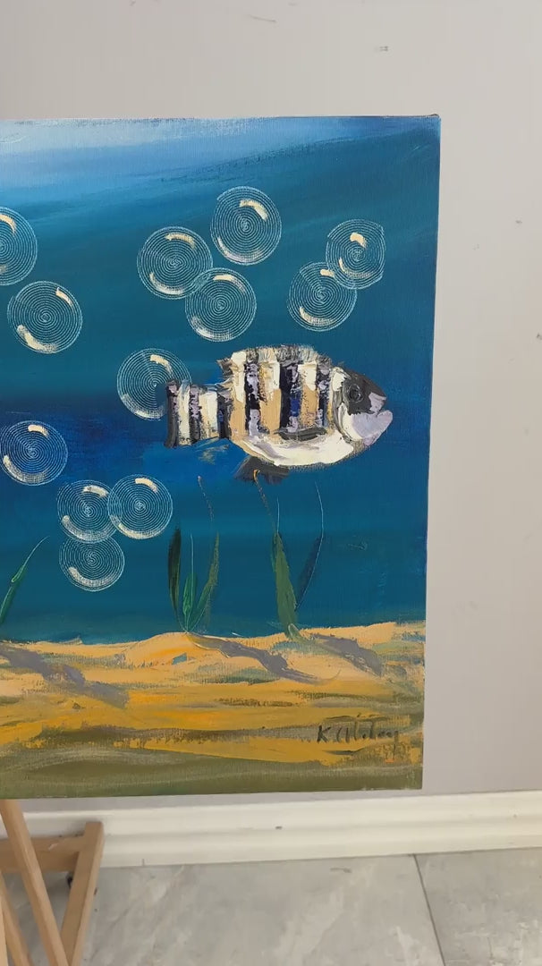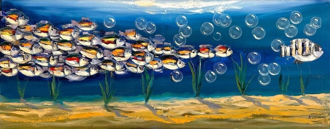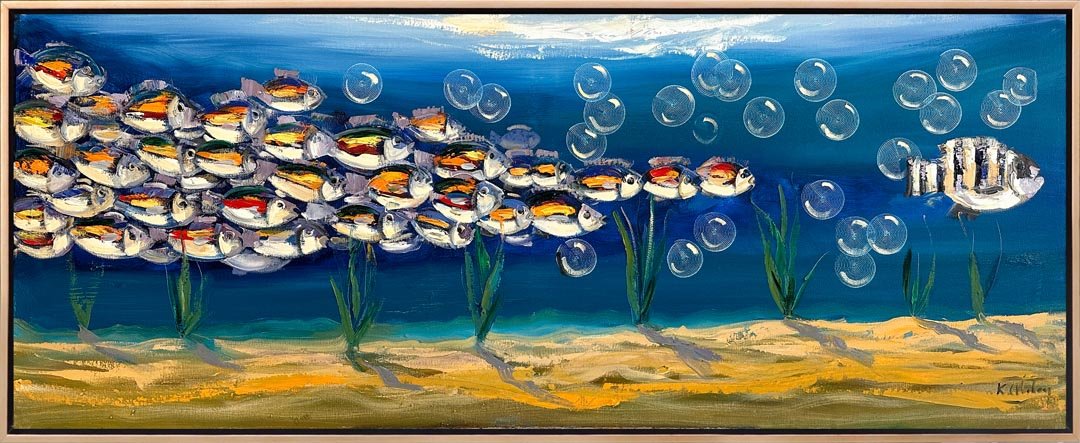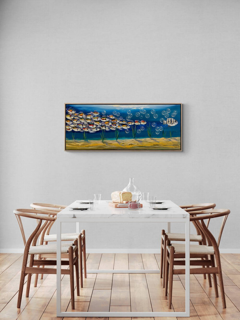 Mavi Derinliklerde Yüzen Balıklar Yağlı Boya Tablosu
