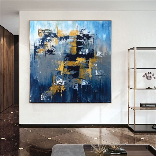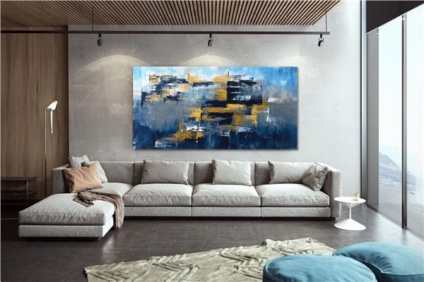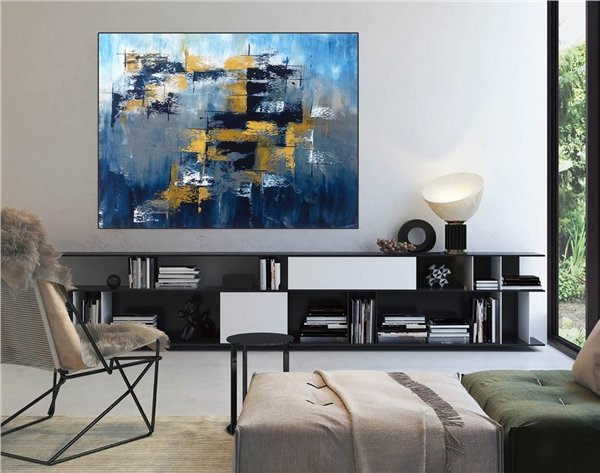 Mavi Gri ve Altın Siparişe Özel Soyut Yağlı Boya Tablo