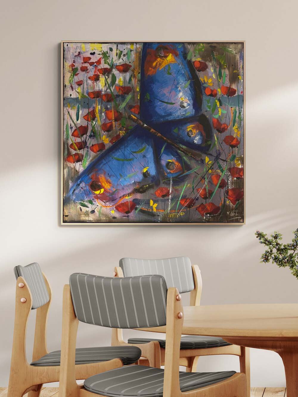 Mavi Kelebeğin Hayali Yağlı Boya Tablosu