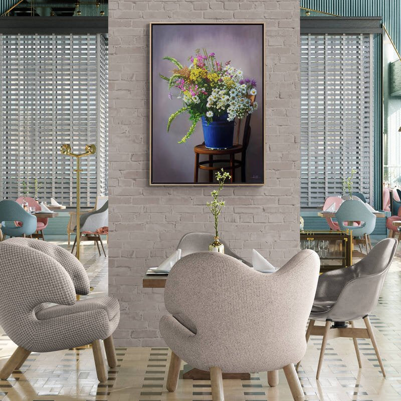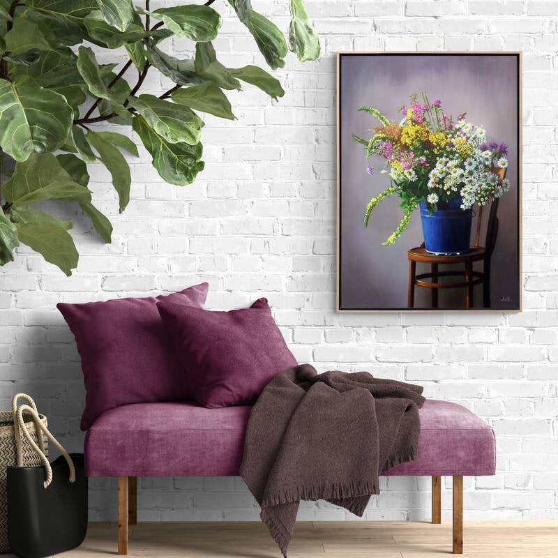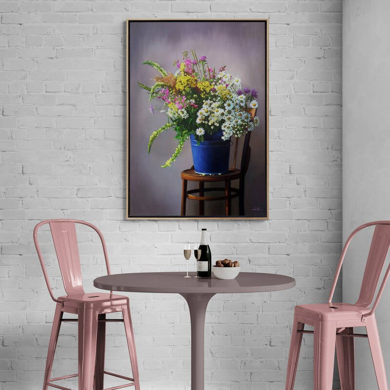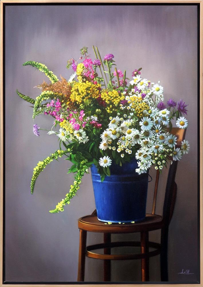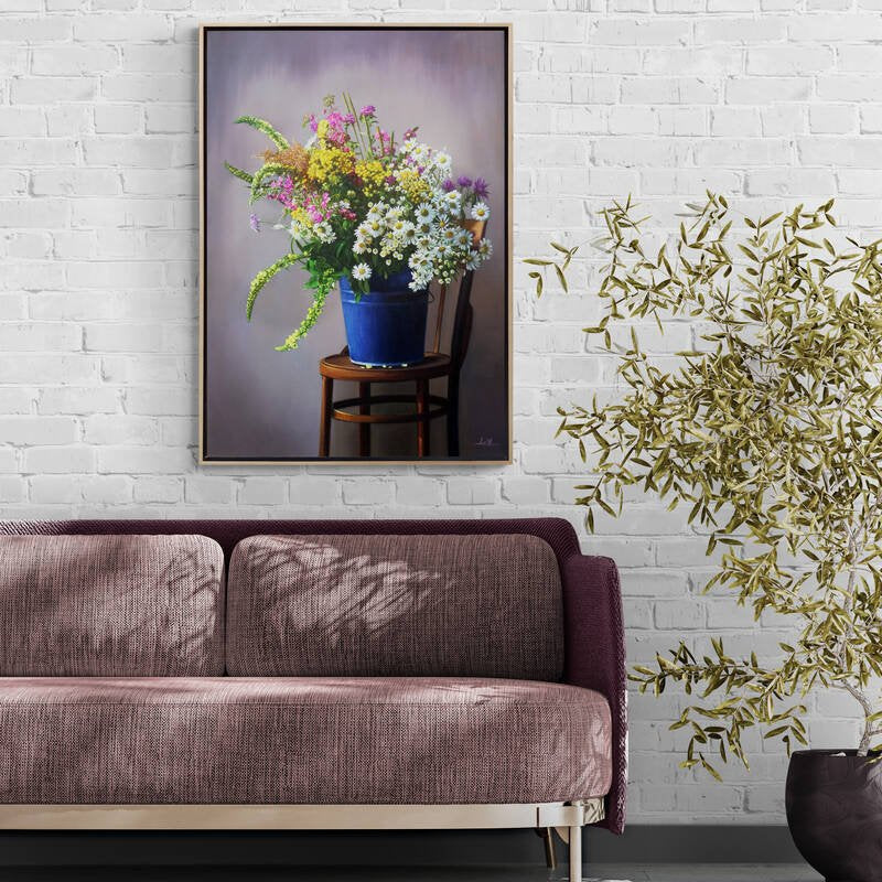 Mavi Kovadaki Kır Çiçekleri Siparişe Özel Yağlı Boya Tablo