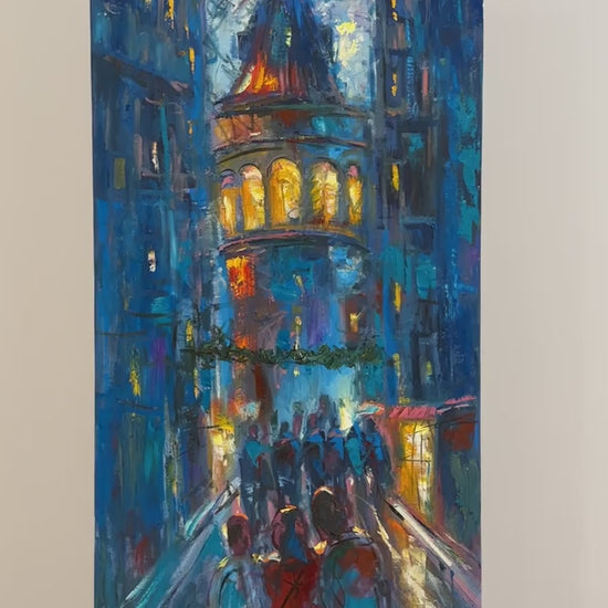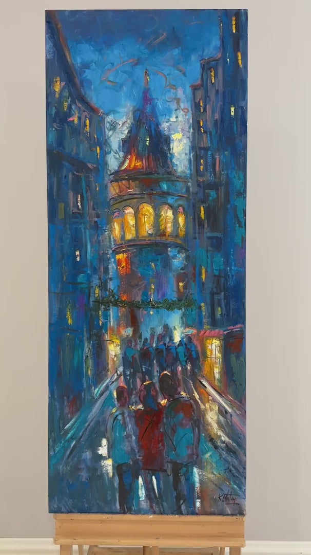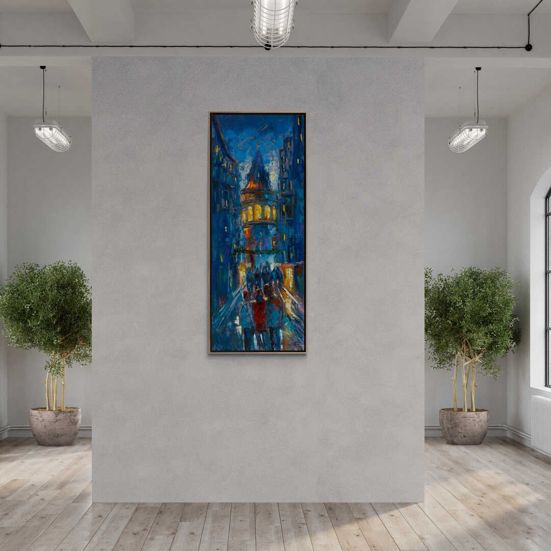 Mavi Rüyaların Sokağı Yağlı Boya Tablosu