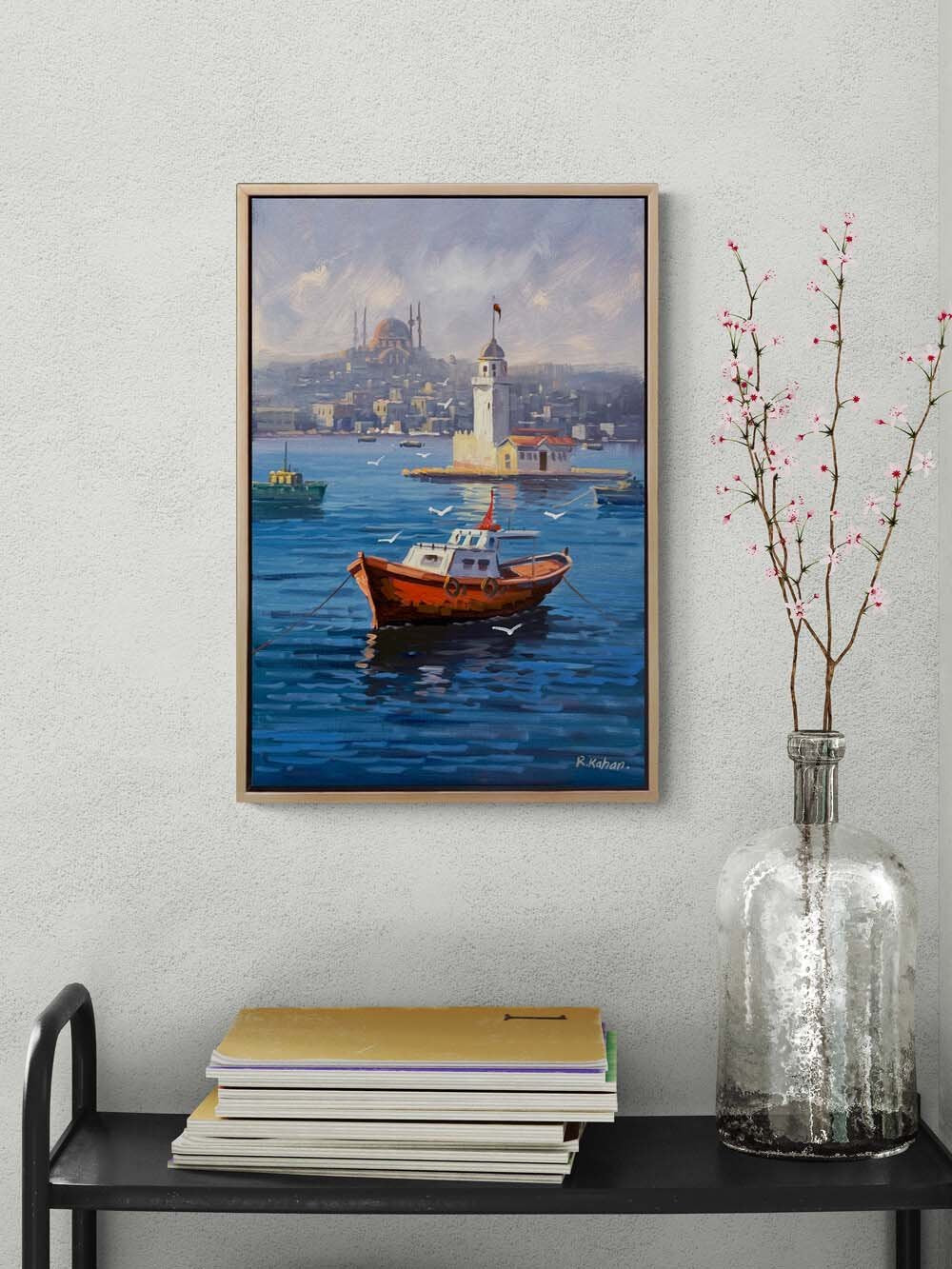 Maviyle Sarılan Kız Kulesi Yağlı Boya Tablosu