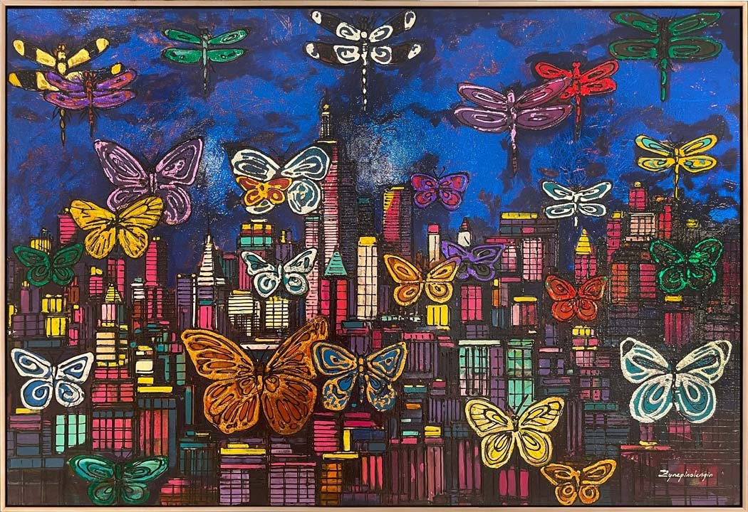 Modern Şehirin Kelebekleri Yağlı Boya Tablosu