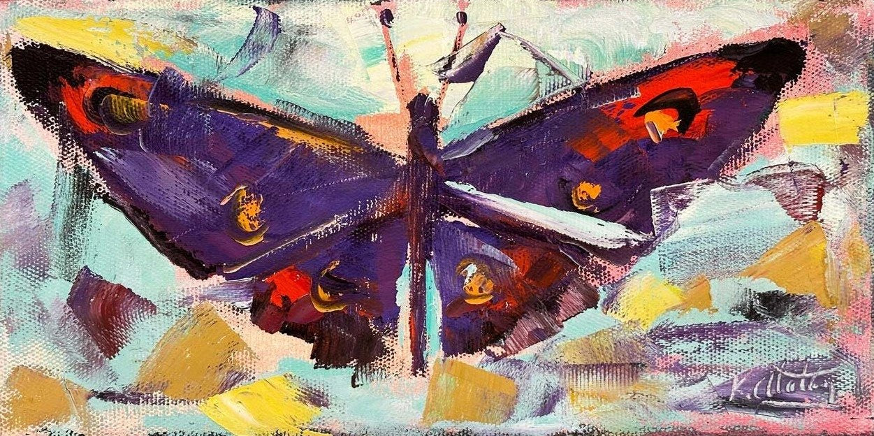 Mor Kelebek Kanatları Yağlı Boya Tablosu