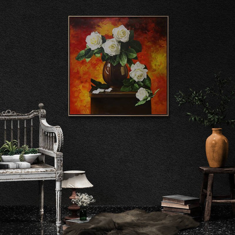 Narin Beyaz Güller Siparişe Özel Yağlı Boya Tablo