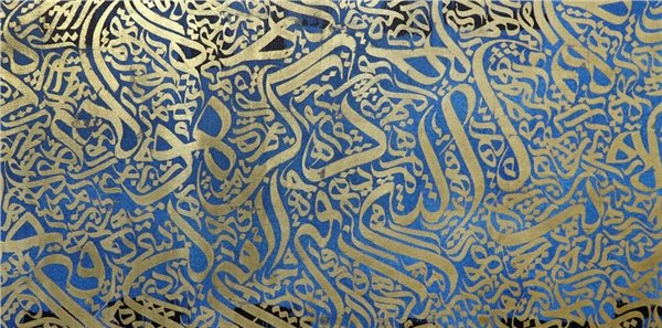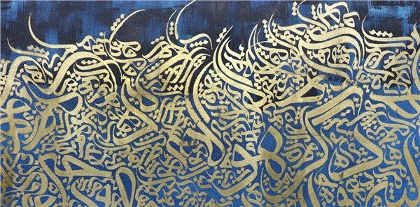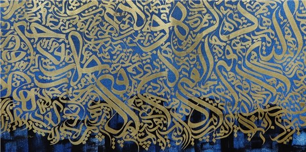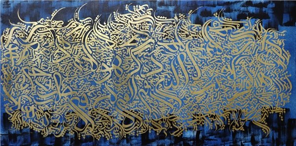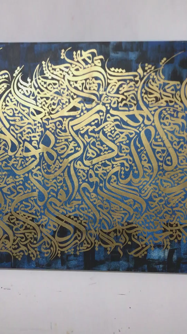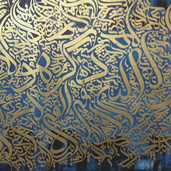 Lacivert Fonlu Altın Yazılı Nas Suresi | Yağlı Boya Hat Tablo