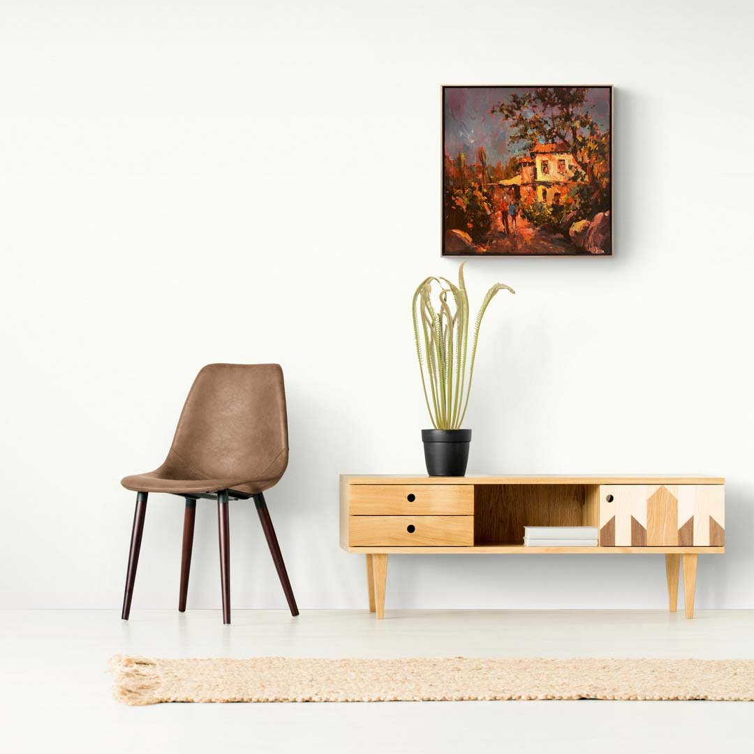 Nostalji Kokan Eski Köy Evleri Yağlı Boya Tablosu