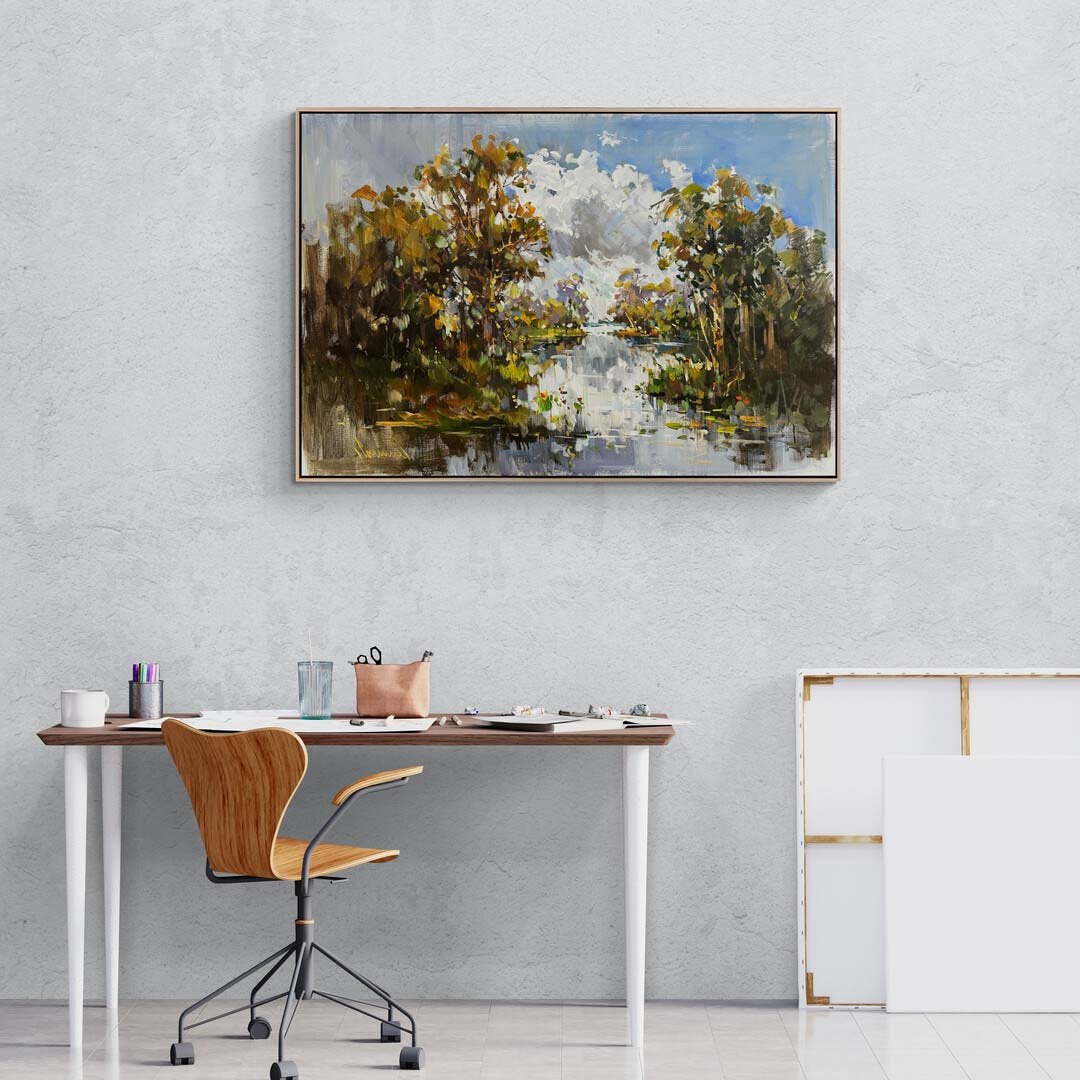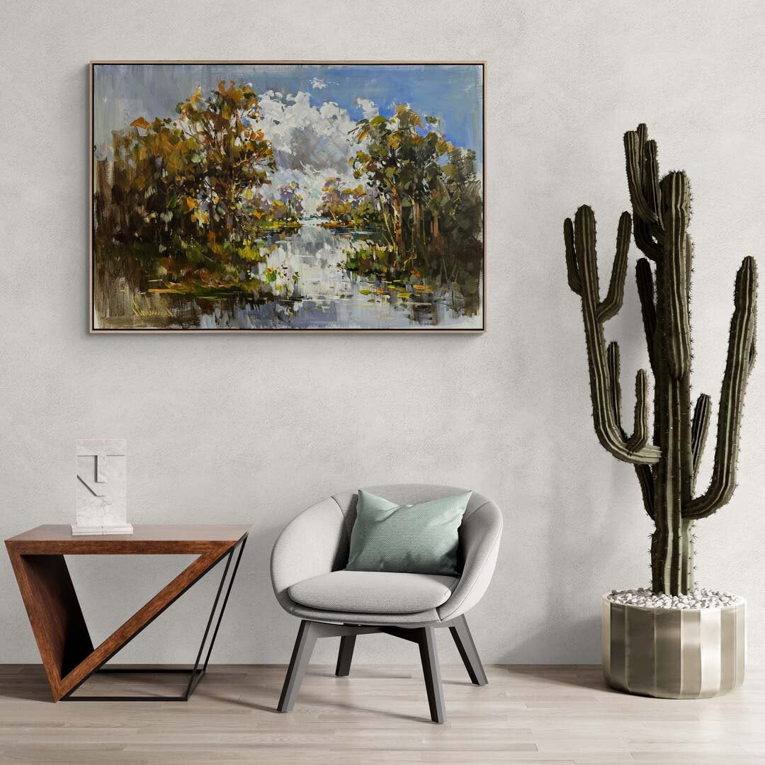 Orman İçinde Nehir Yağlı Boya Tablosu