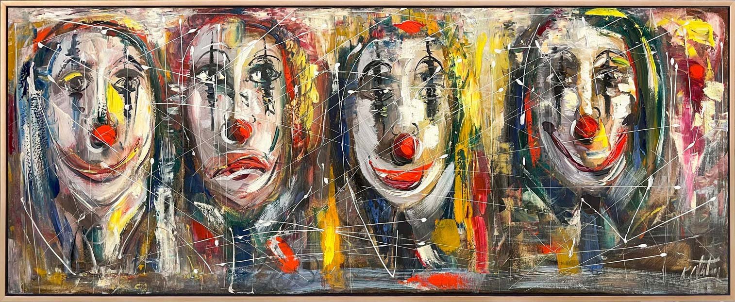 Palyaço Yüzleri Yağlı Boya Tablosu