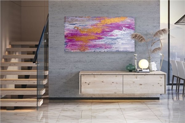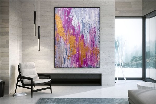 Pembe Gri Sarı Siparişe Özel Soyut Yağlı Boya Tablo