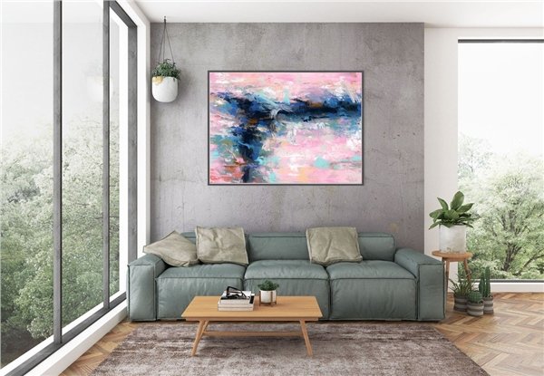 Pembe Nane ve Mavi Siparişe Özel Soyut Yağlı Boya Tablo
