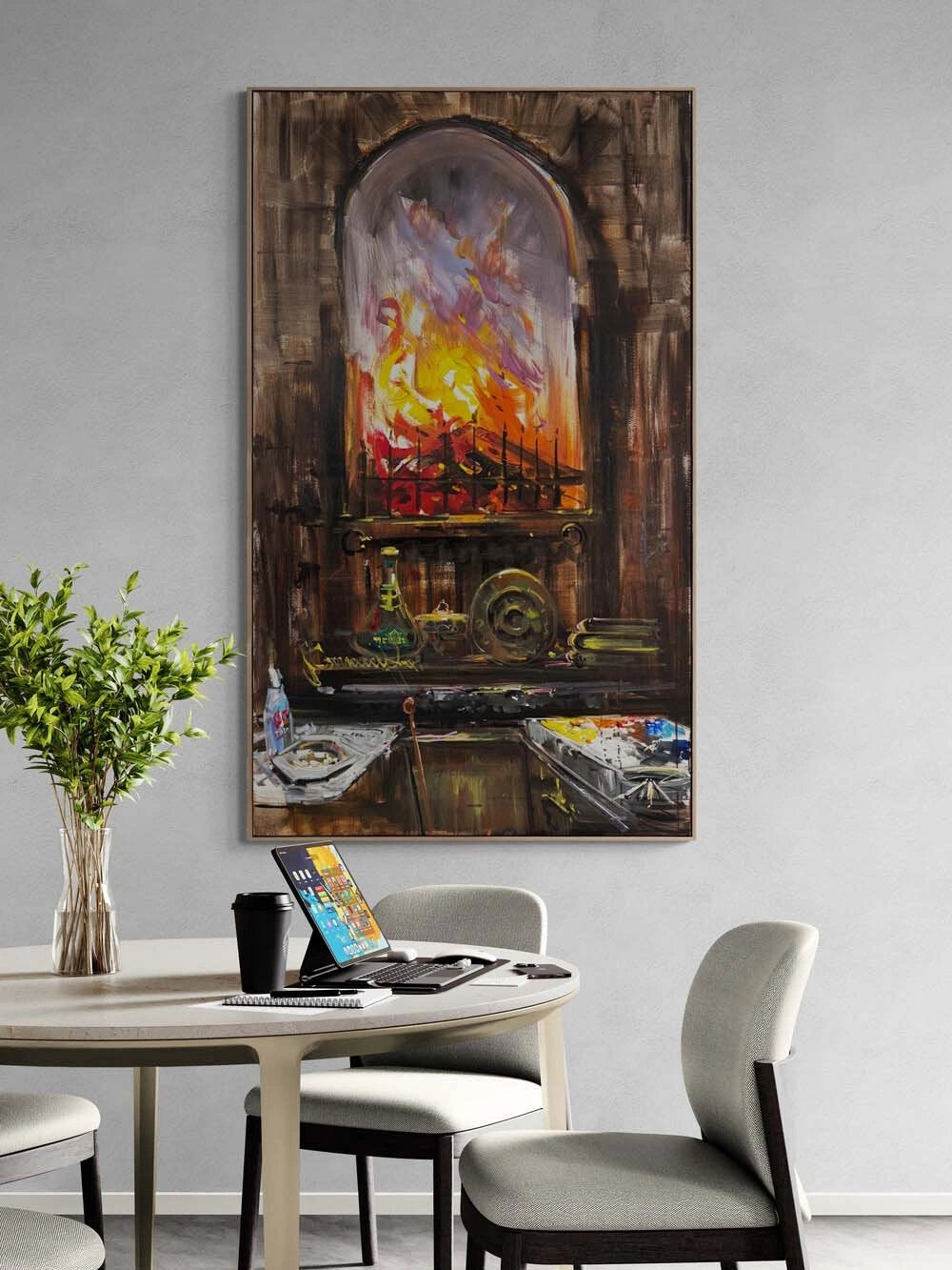 - Özel olarak üretilen 400 gr kalınlığında 1.sınıf sanatsal yağlıboya tuval üzerine çalışılır.