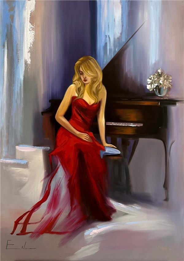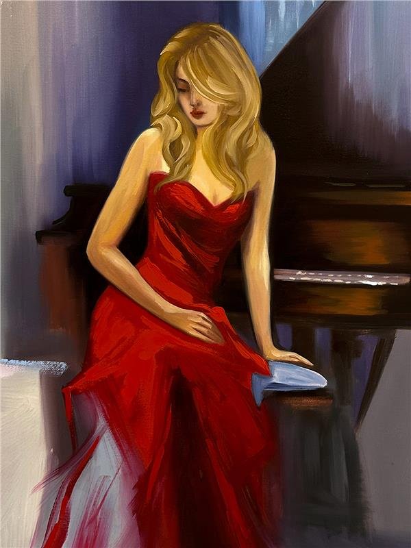 Piyano Çalan Yağlı Boya Tablosu