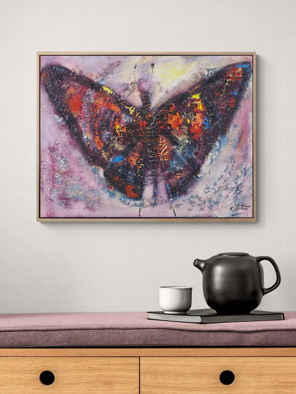 Renkler İçinde Kelebek Yağlı Boya Tablosu