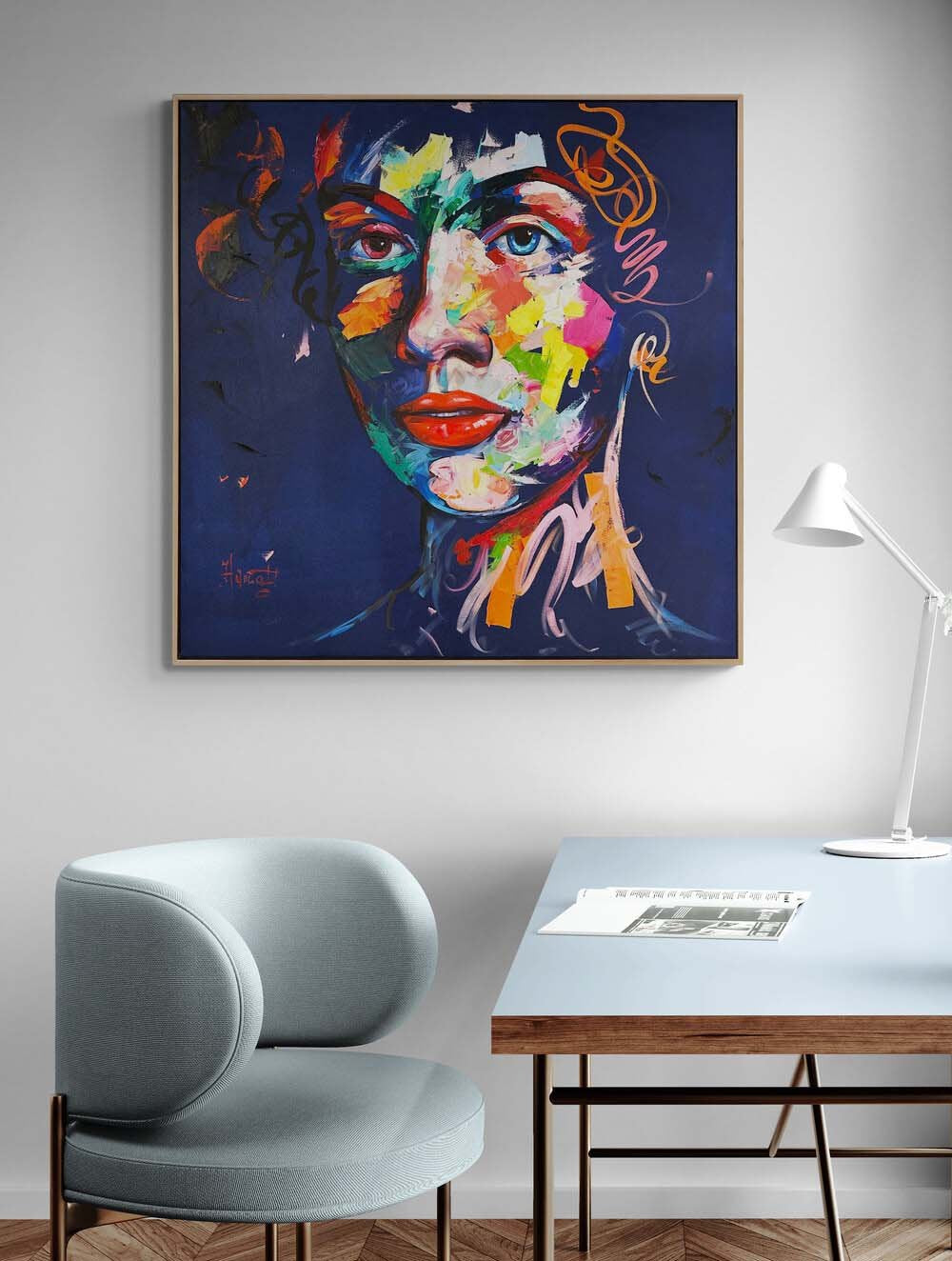 Renklerin İçindeki Kadın Yağlı Boya Tablosu