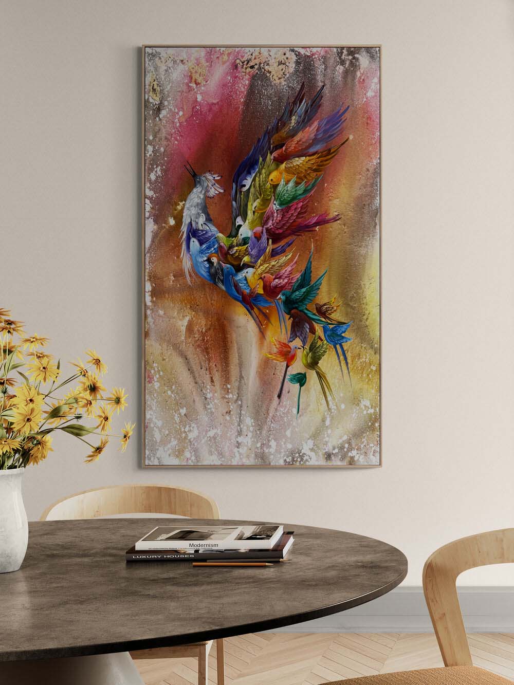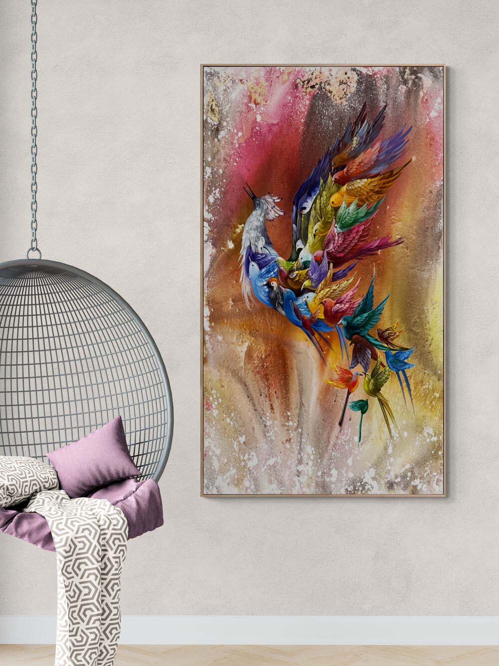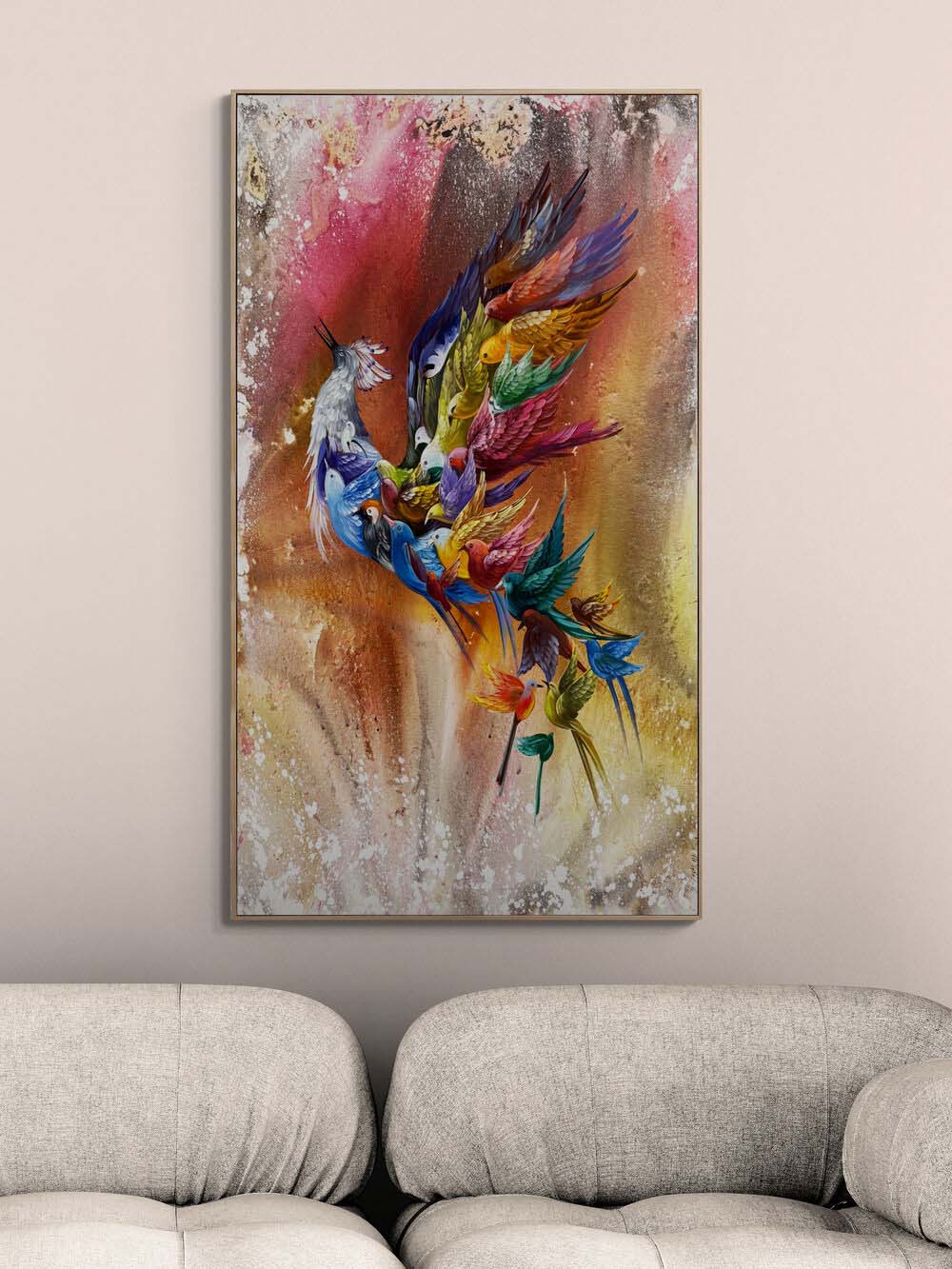 Renkli Simurg Kuşu Yağlı Boya Tablosu