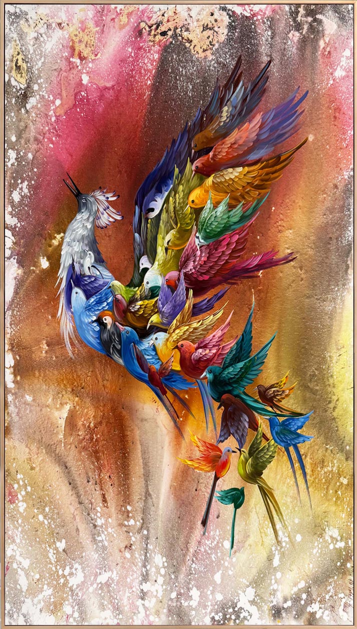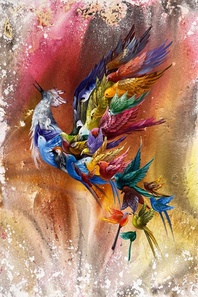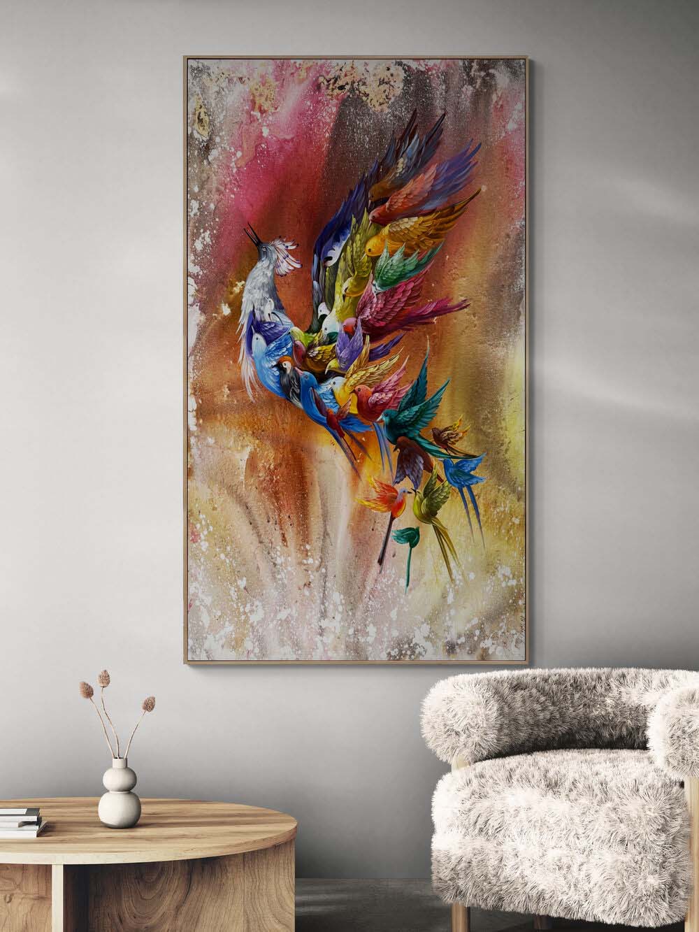 Renkli Simurg Kuşu Yağlı Boya Tablosu