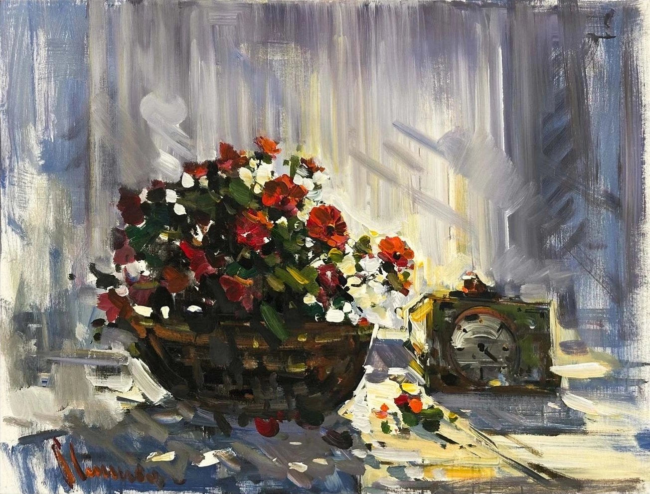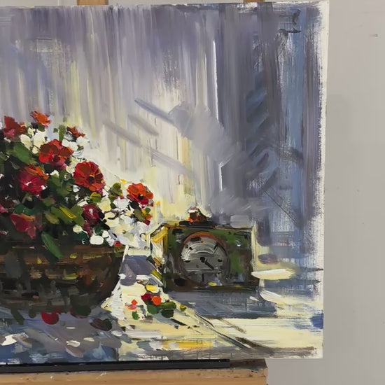 Romantik Çiçek Sepeti Yağlı Boya Tablosu