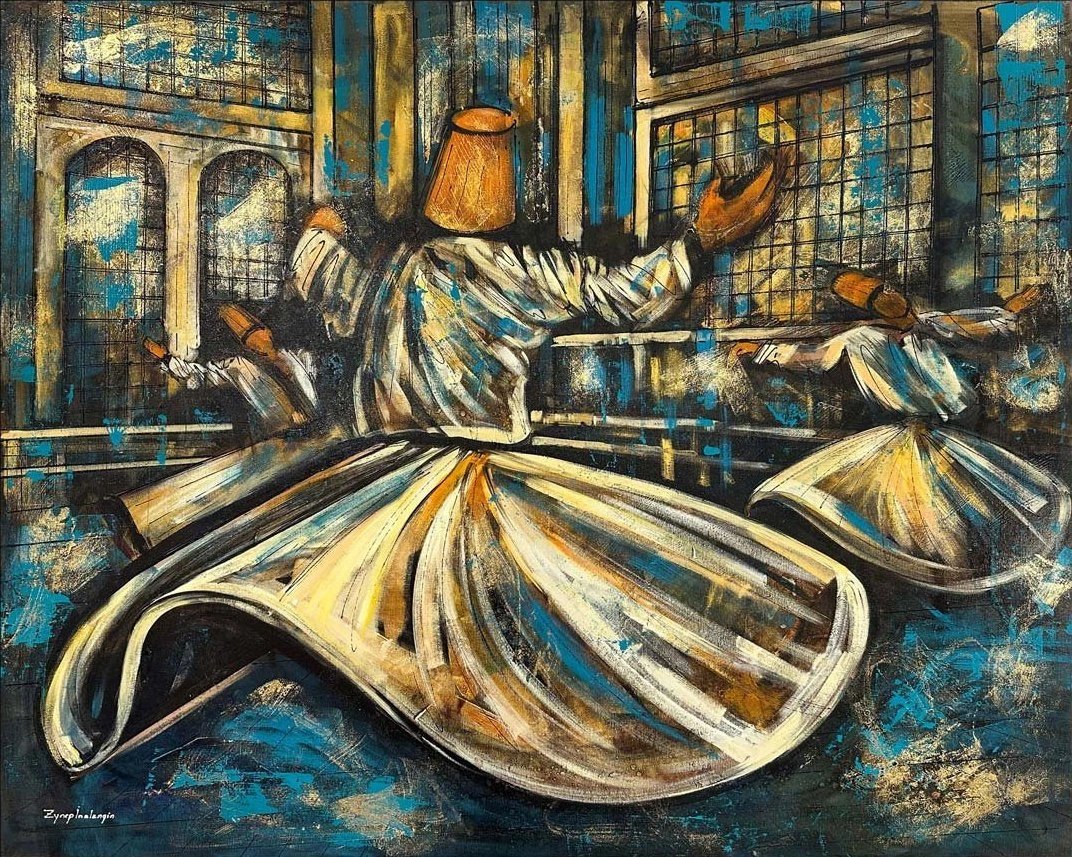 Ruhun Yolculuğu Semazenler Yağlı Boya Tablosu