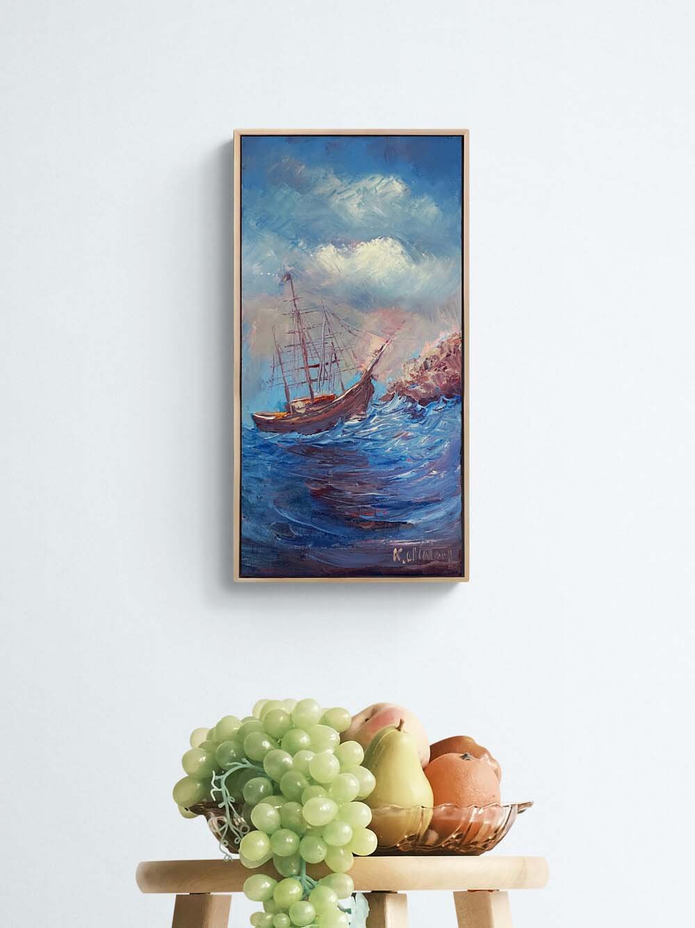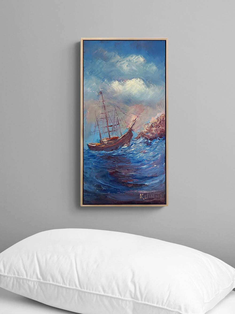 Rüzgarla Savrulan Mavi Yağlı Boya Tablosu