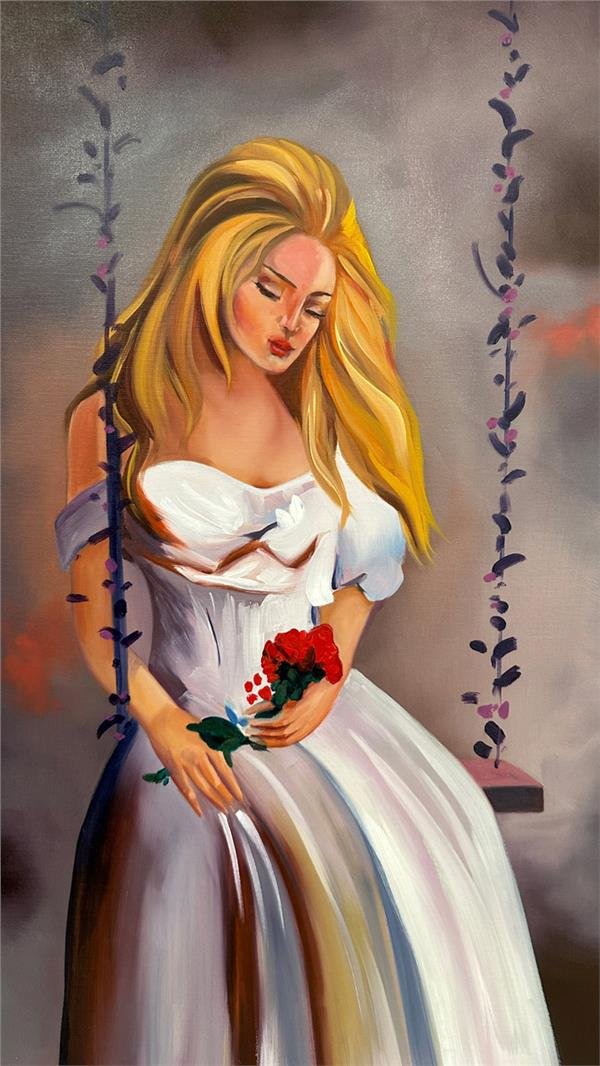 Salıncakta ki Güzel Yağlı Boya Tablosu