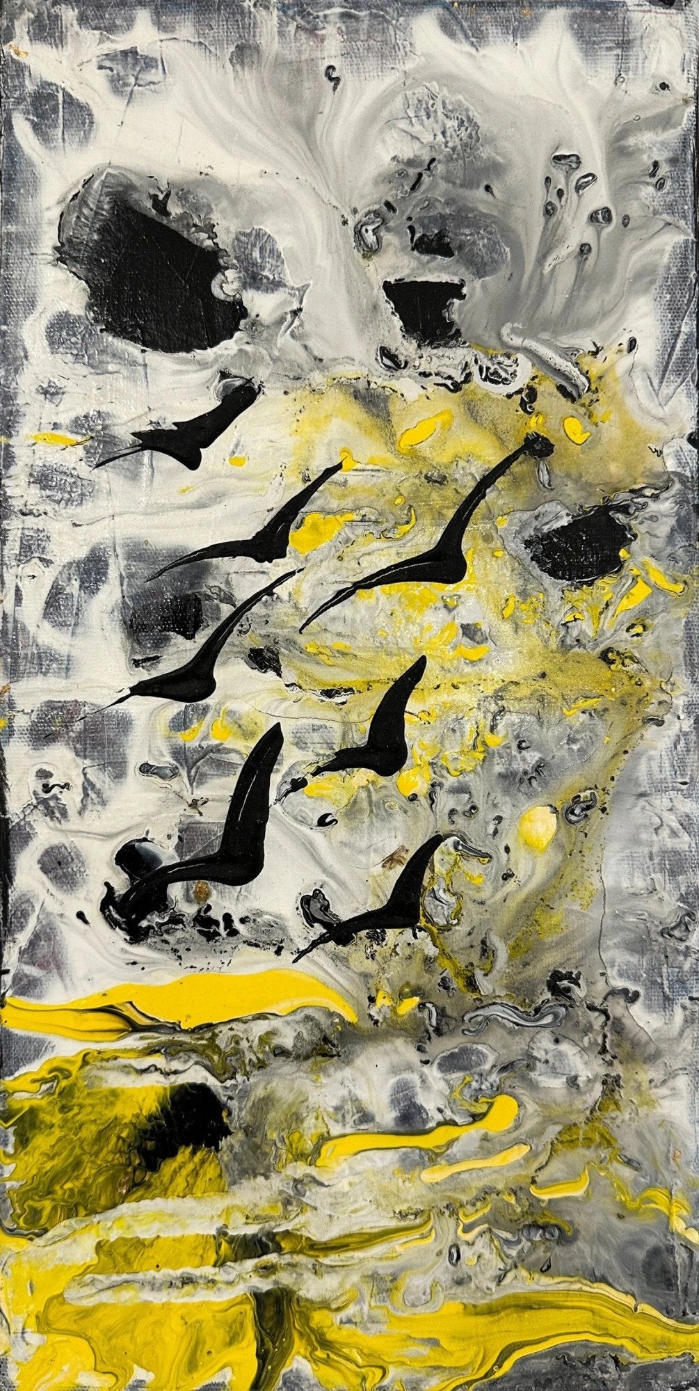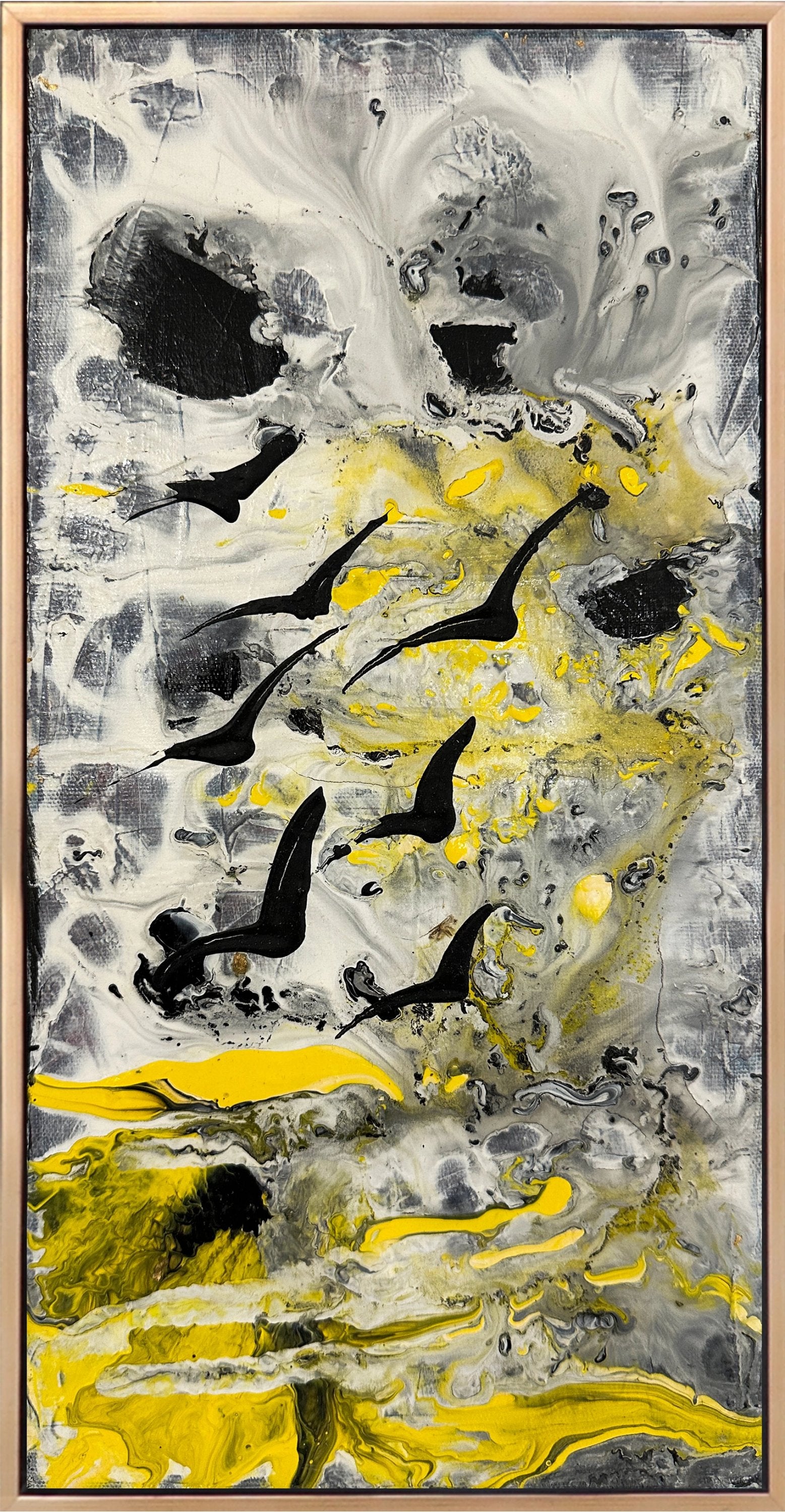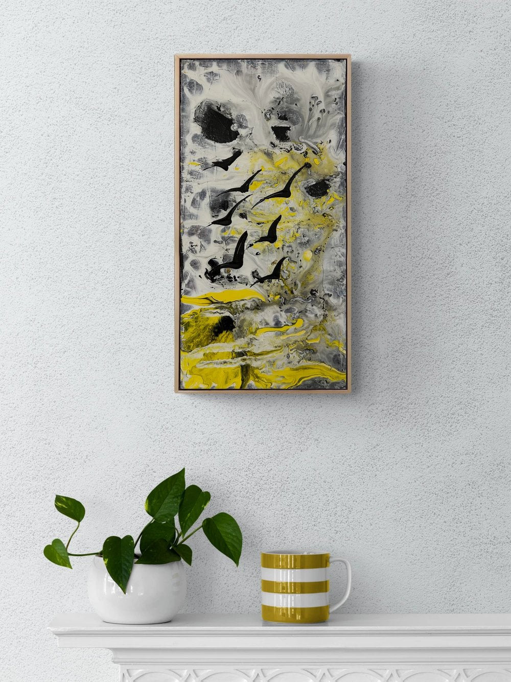 Sarı Rüyada Kuşlar Yağlı Boya Tablosu