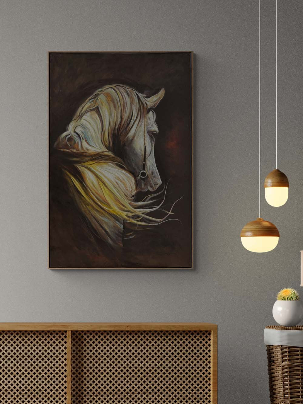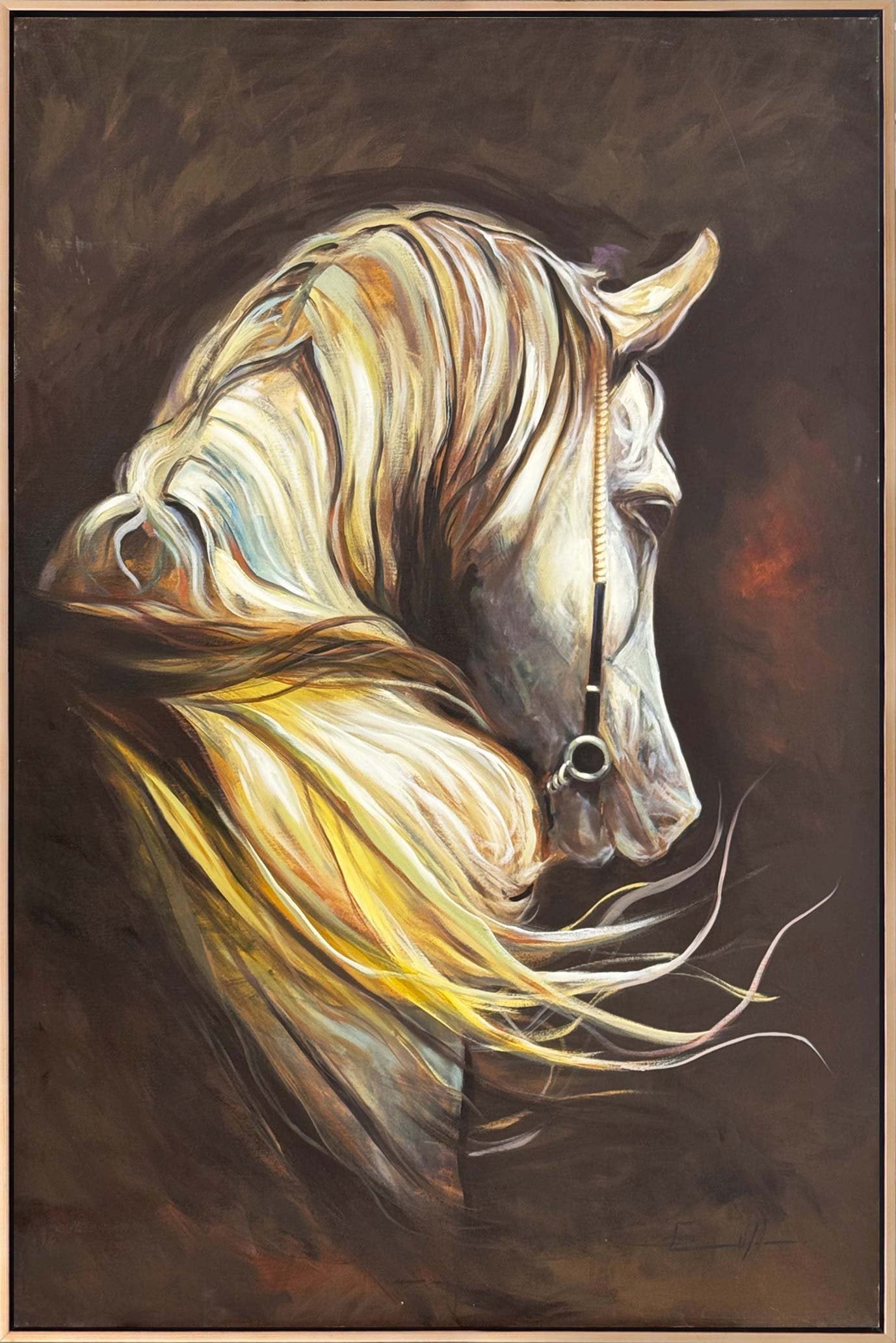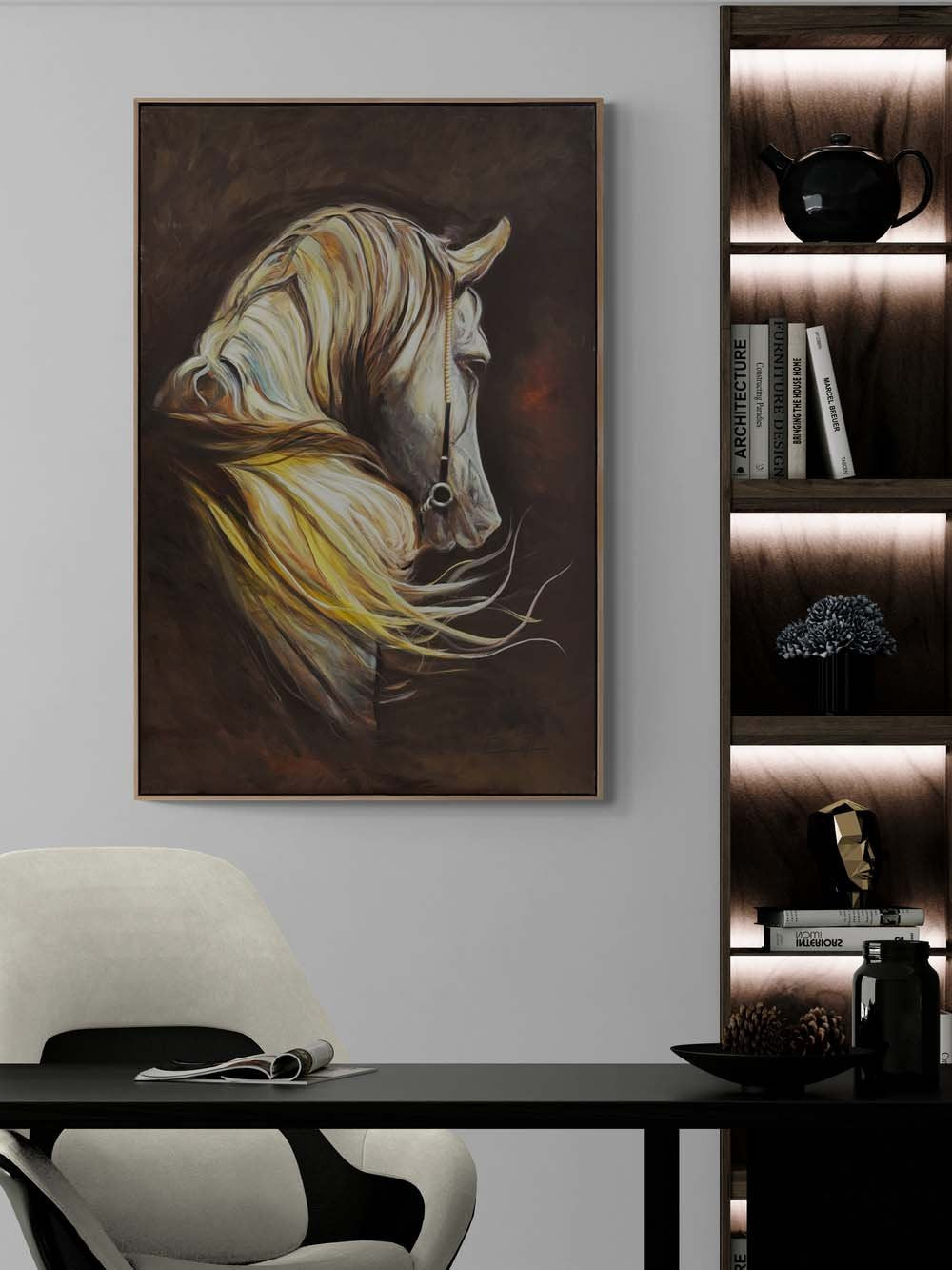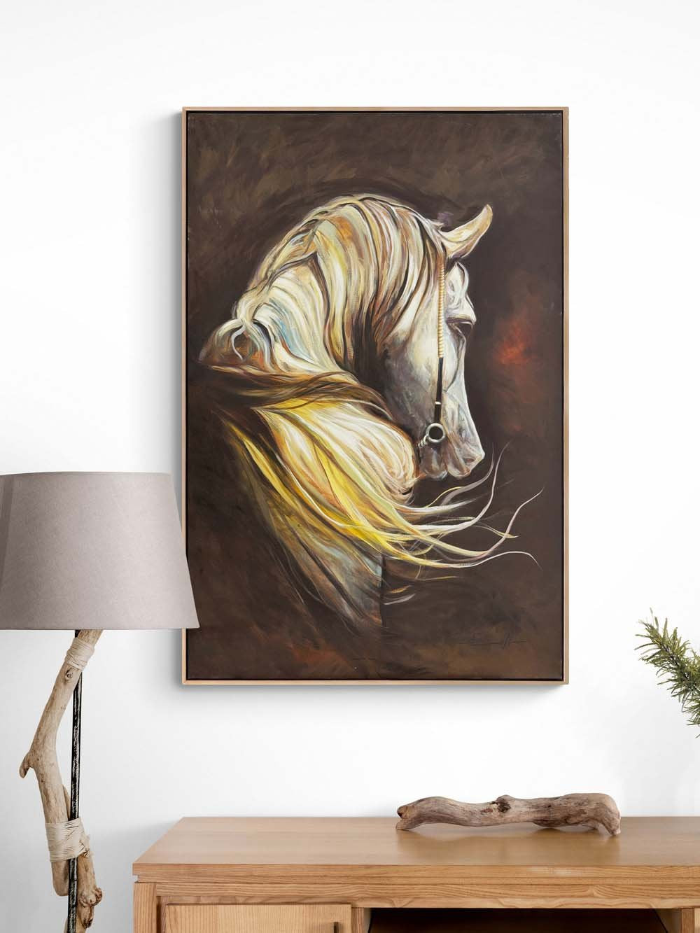 Sarı Yellerde Beyaz At Yağlı Boya Tablosu
