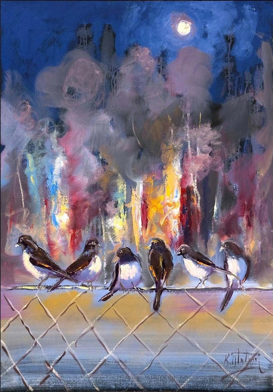 Şehirde Bekleyiş Yağlı Boya Tablosu