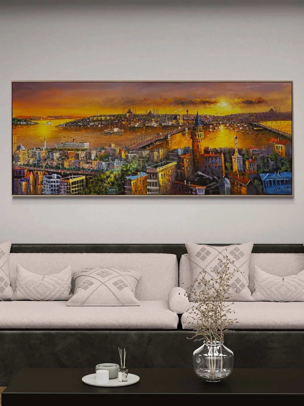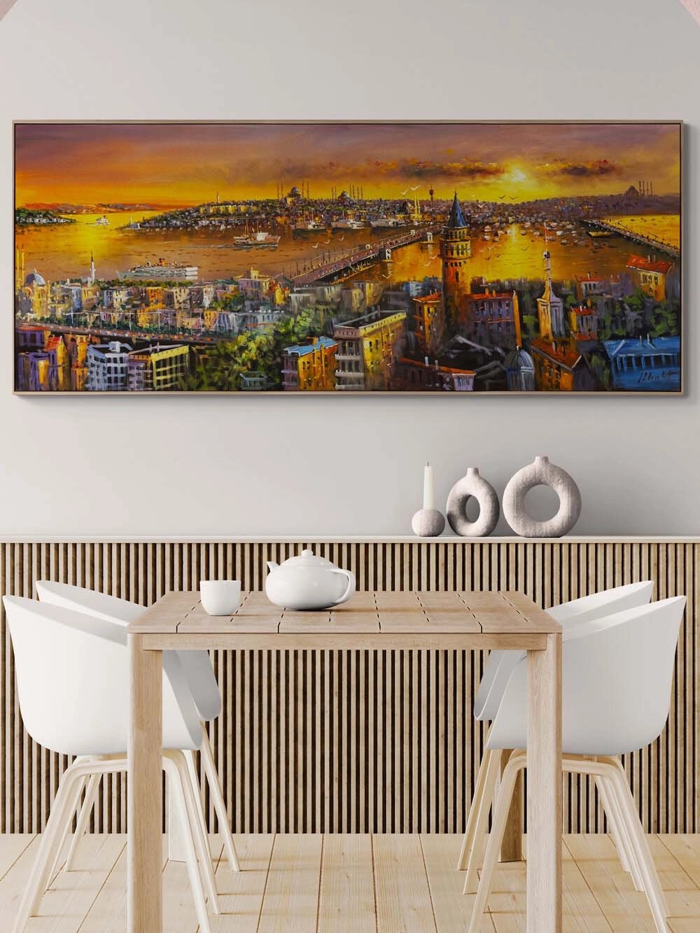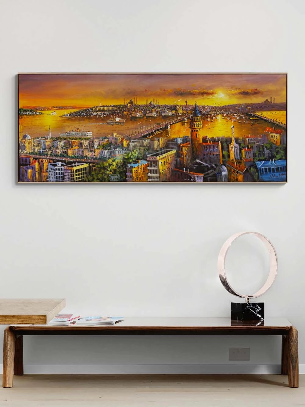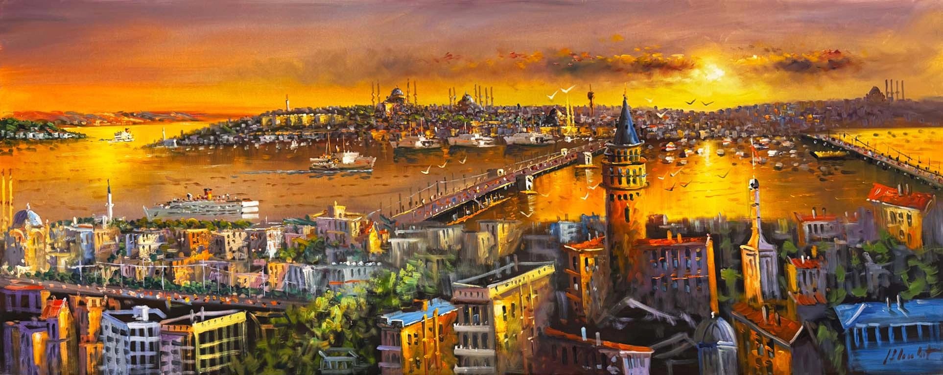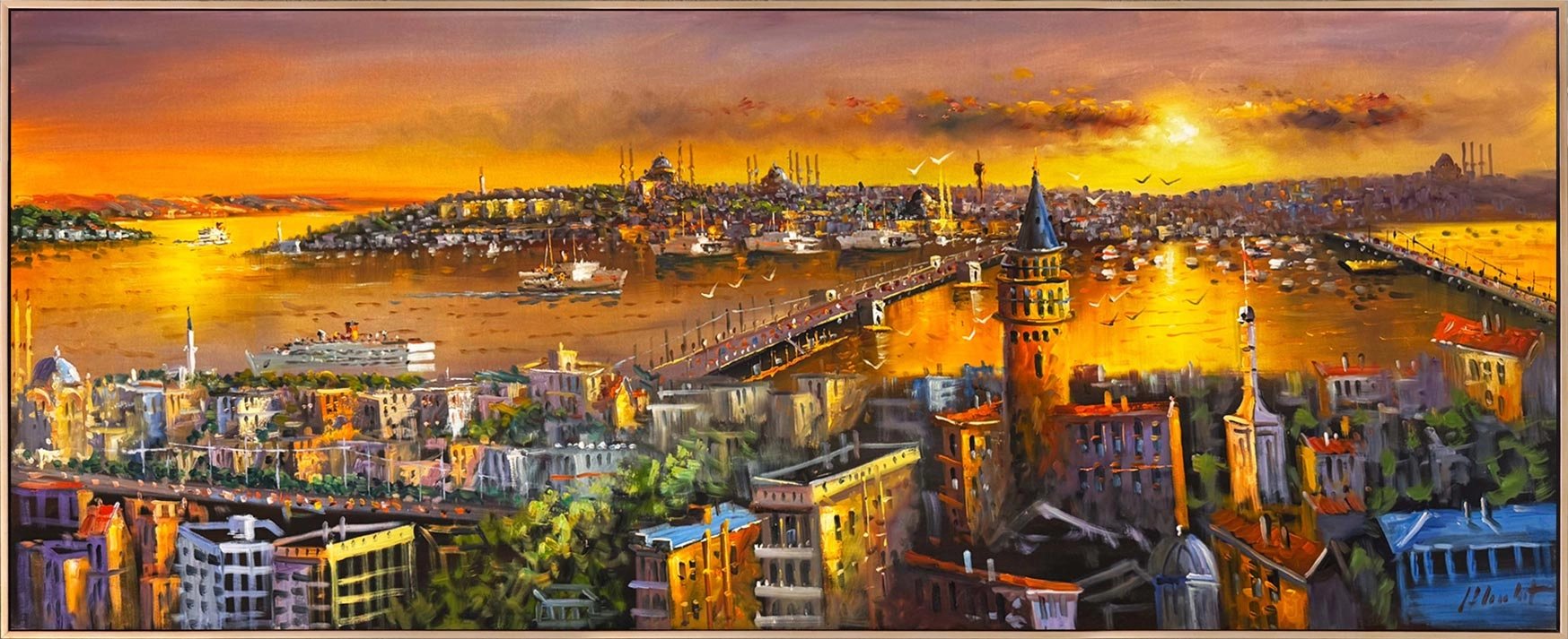 Şehrin Kalbine Akşam Yağlı Boya Tablosu