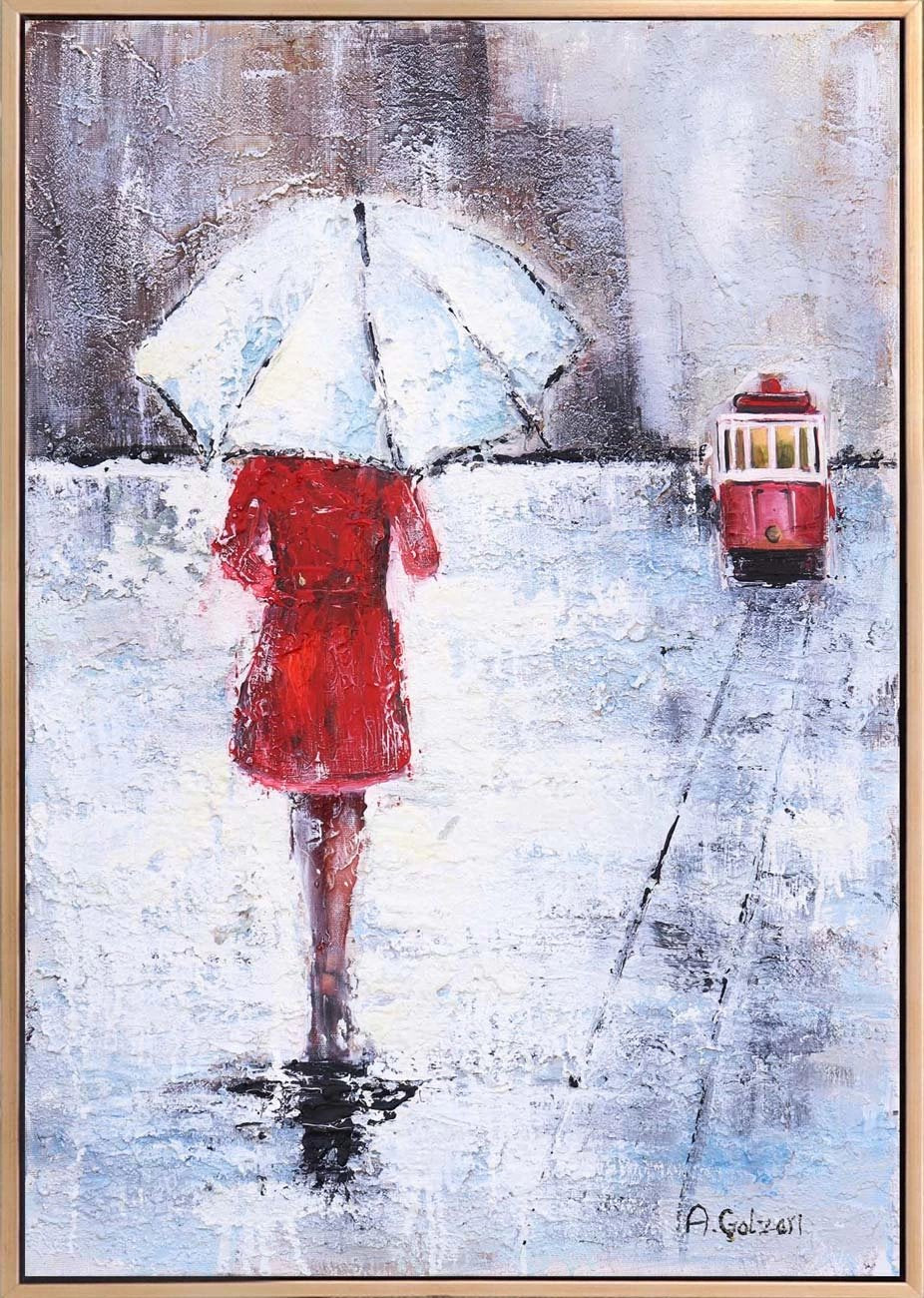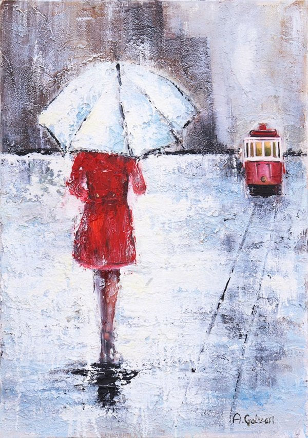 Şemsiyenin Altında İstiklal Yağlı Boya Tablosu